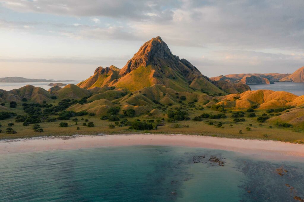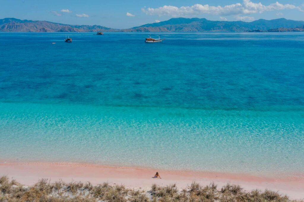 This is the most famous viewpoint in Komodo National Park, likely the one you’ve seen in countless pictures. Here, you can enjoy a leisurely 45-minute hike to the summit and take in panoramic views of the park. If you look closely at the vista, you’ll spot a pink beach!