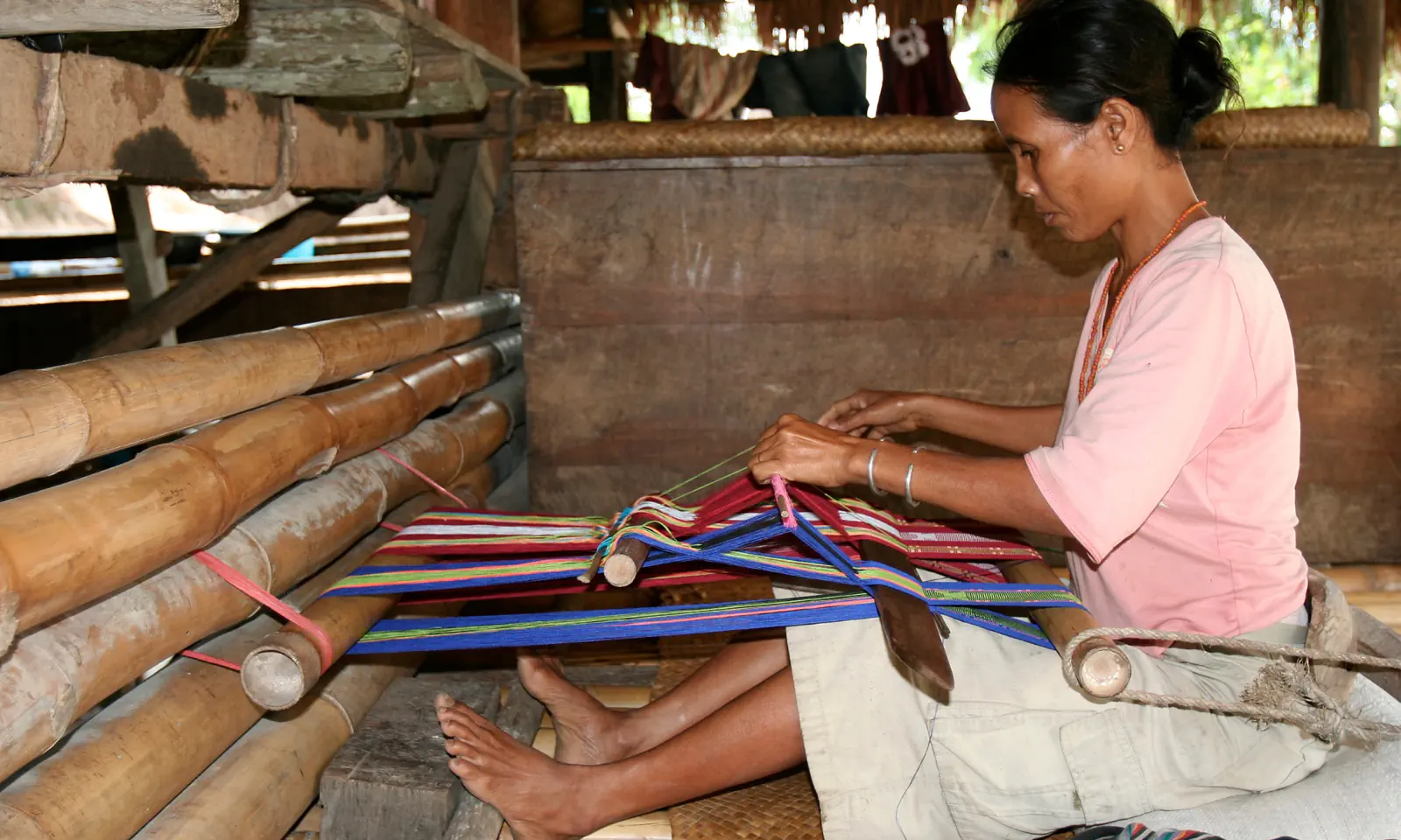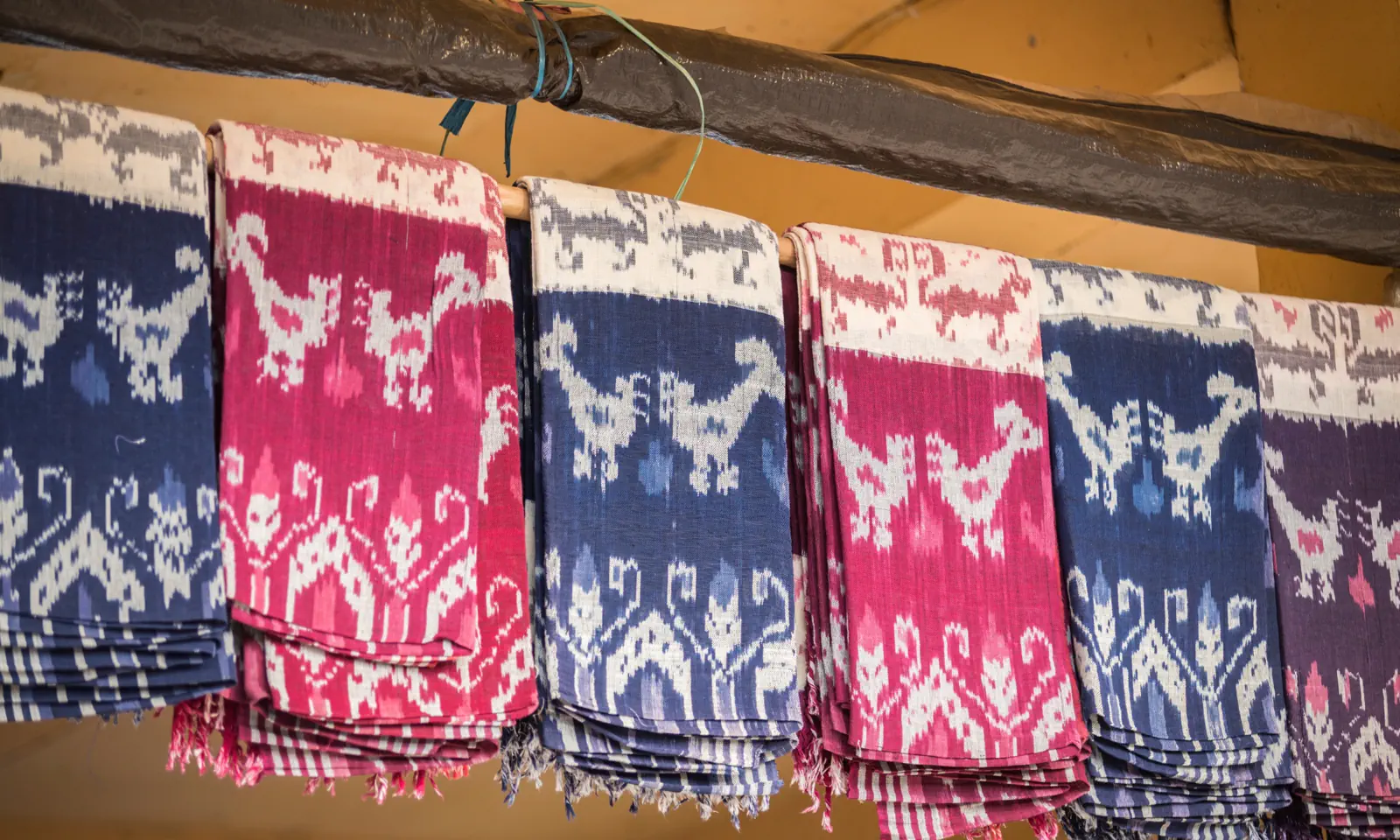 Sumba’s hand-woven ikat textiles are among Indonesia’s most prized. Ikat is a resist-dyeing technique where threads are tied in patterns before dyeing, creating intricate designs of remarkable beauty and complexity.