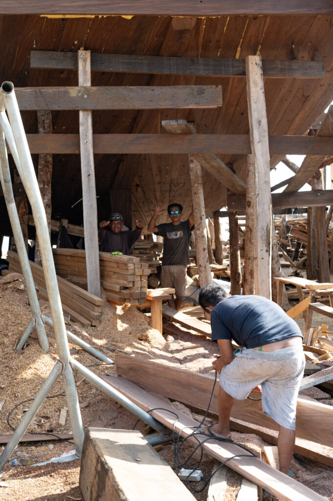 La coque en bois est un élément fondamental dans la construction du Pinisi. Le terme désigne un type de gréement, mais ne dit rien sur la forme de la coque du navire. Cette partie du bateau est conçue à la main et le savoir-faire est transmis de génération en génération. La forme de la coque est soigneusement adaptée pour assurer une navigation stable et efficace.