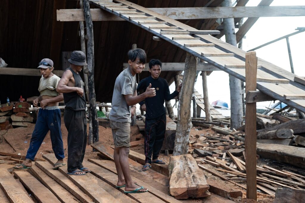 Les travailleurs commencent par ramasser du bois le cinquième et le septième jour du mois, en associant le chiffre 5 à la chance et le chiffre 7 à la chance. Avant d’abattre un arbre, ils organisent une cérémonie pour expulser l’esprit qui y réside, en sacrifiant un poulet en guise d’offrande. Ils choisissent le type d’arbre en fonction de sa fonction et coupent le bois dans le sens du fil (du bas vers le haut) pour en garantir la solidité. Après la collecte, le bois est séché.