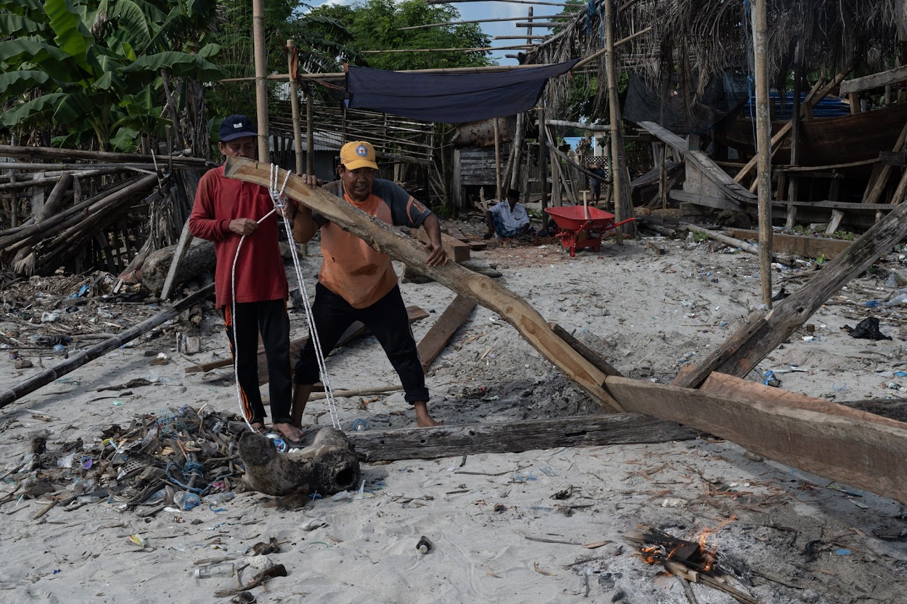 L’installation des planches de serrage de la quille accompagne la cérémonie du Kalebiseang, suivie de la cérémonie de l’Anjarreki pour renforcer la quille. Les ouvriers calfeutrent la coque avec de l’écorce d’arbre de barruk, et font l’allepa (calfatage) avec un mastic composé de chaux et d’huile de noix de coco. Ils terminent en frottant la pâte avec de la peau de papaye.