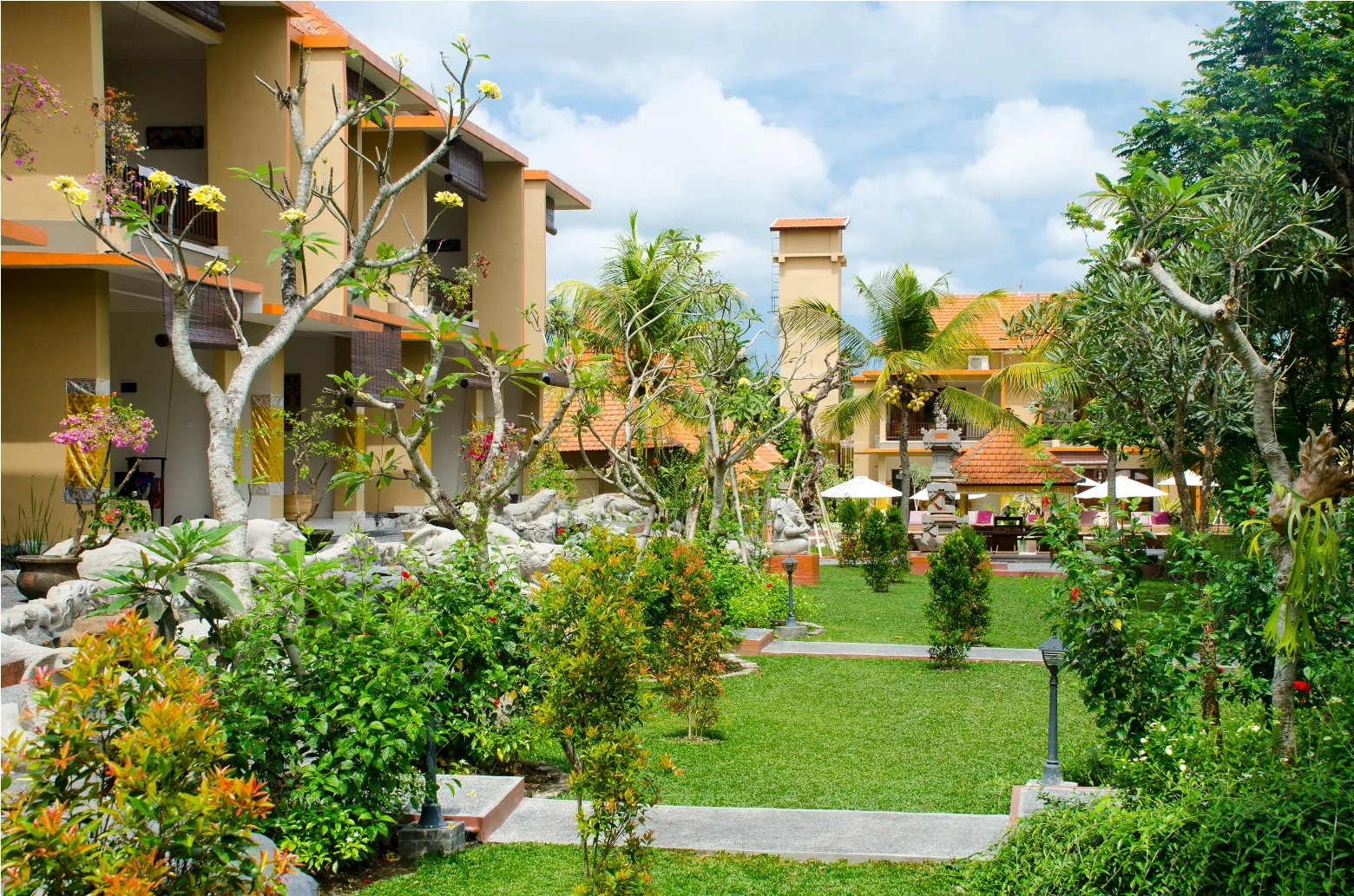 Located in the heart of Ubud, Bali’s renowned artist village, Green Field Ubud offers a tranquil escape surrounded by nature’s beauty. Once an art studio that inspired creativity with its views of rice fields, sunsets, and the iconic Monkey Forest, it has transformed into a boutique-style haven. The hotel features uniquely designed rooms set amidst lush tropical gardens adorned with statues, fountains, and lotus ponds.