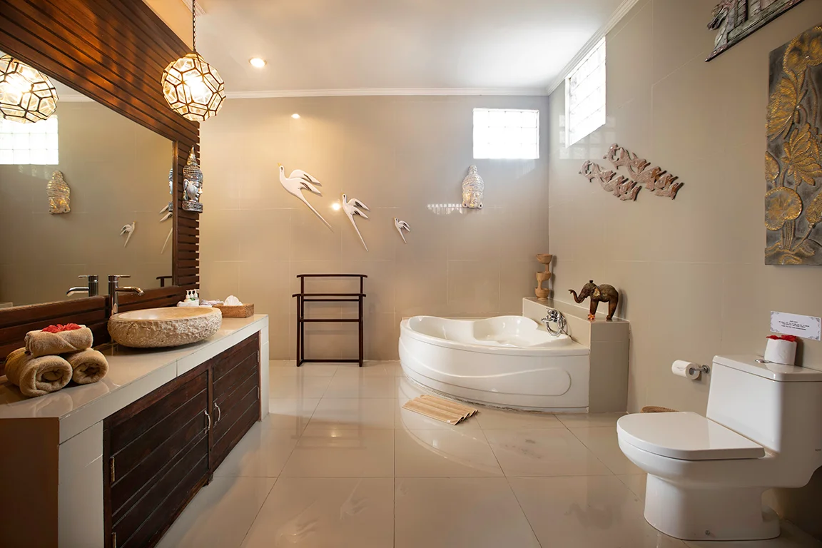 Modern building in old traditional Javanese style (Joglo), big terrace with view to the lotus pond, double bed or twin bed, bathroom with separate hot shower and bathtub, AC, telephone, minibar, hair dryer, safety box, electric kettle.