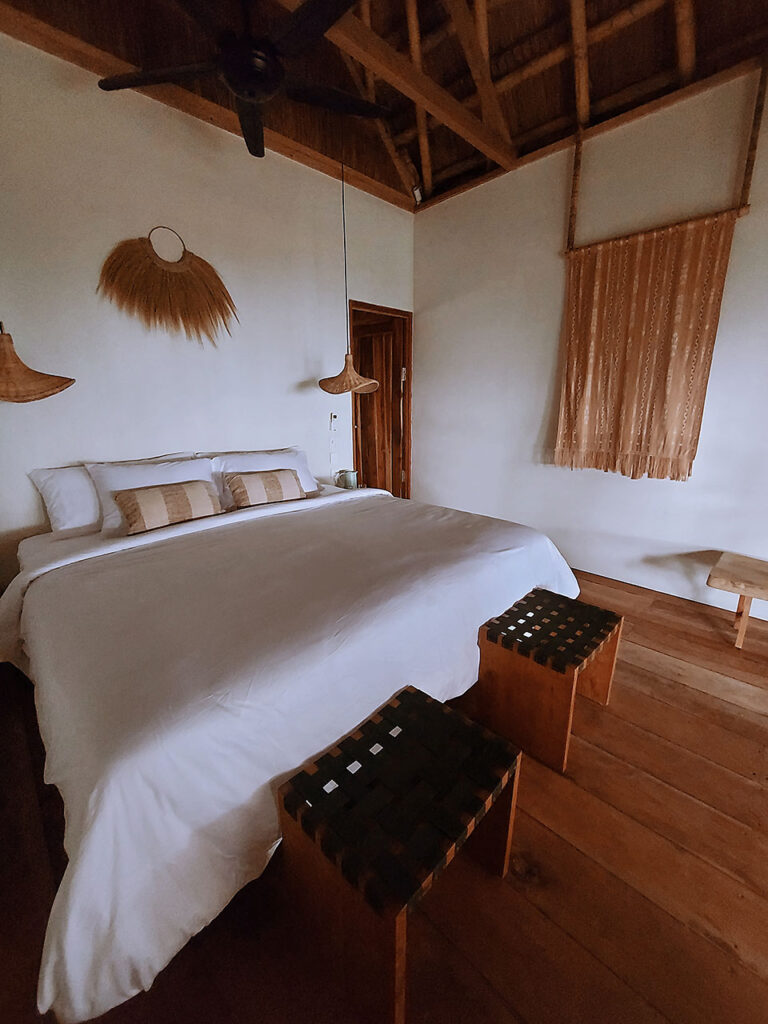 Each of the four ocean-facing suites captures the relaxed rhythm of island living. Step inside and find a spacious, sun-washed room with a king-sized bed, crisp white linens, and authentic local art adorning the walls. Floor-to-ceiling glass doors open onto your private deck, complete with beanbags and endless sea views.