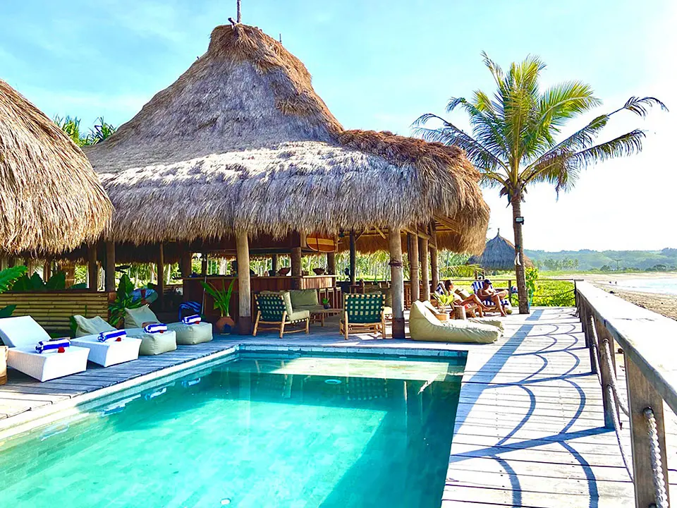 At the heart of Sumba Beach House lies the Pavilion , the vibrant soul of the property. This open, timber-decked space connects the suites to the sand, blending relaxed island style with effortless charm. It’s where guests gather to enjoy breakfast with sweeping ocean views, linger over long lunches between surf sessions, and dine beneath glowing Sumbanese sunsets.