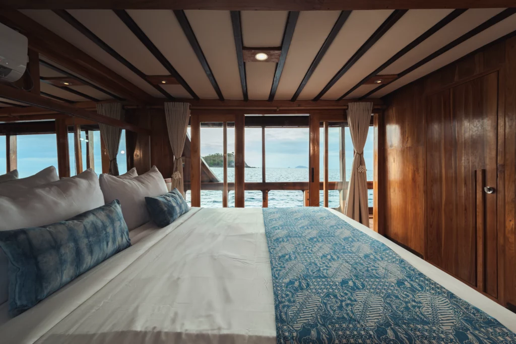 The Augustine Phinisi, launched in 2019 to honor the founders’ grandmother, Oma Augustine, is a 30-meter boat handcrafted in Tanahberu. This family-run boat is managed entirely by the founders, who take care of every detail to make sure guests feel welcome and comfortable. From the moment guests come aboard, they’re treated like family, with a focus on comfort and safety that makes Augustine stand out from other Phinisi boats.