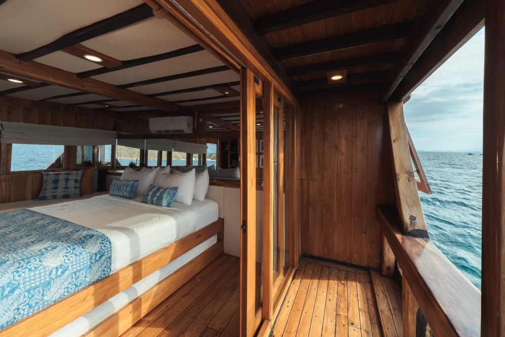 Cruising through the clear waters around Komodo, the Augustine Phinisi offers more than just beautiful views. Guests can enjoy unique, personalized experiences like visiting the Suku Bajo community or take part in marine conservation activities with the « Be a Marine Biologist for a Day » program. The Augustine blends traditional style with personalized service, ensuring each journey is special and memorable.
