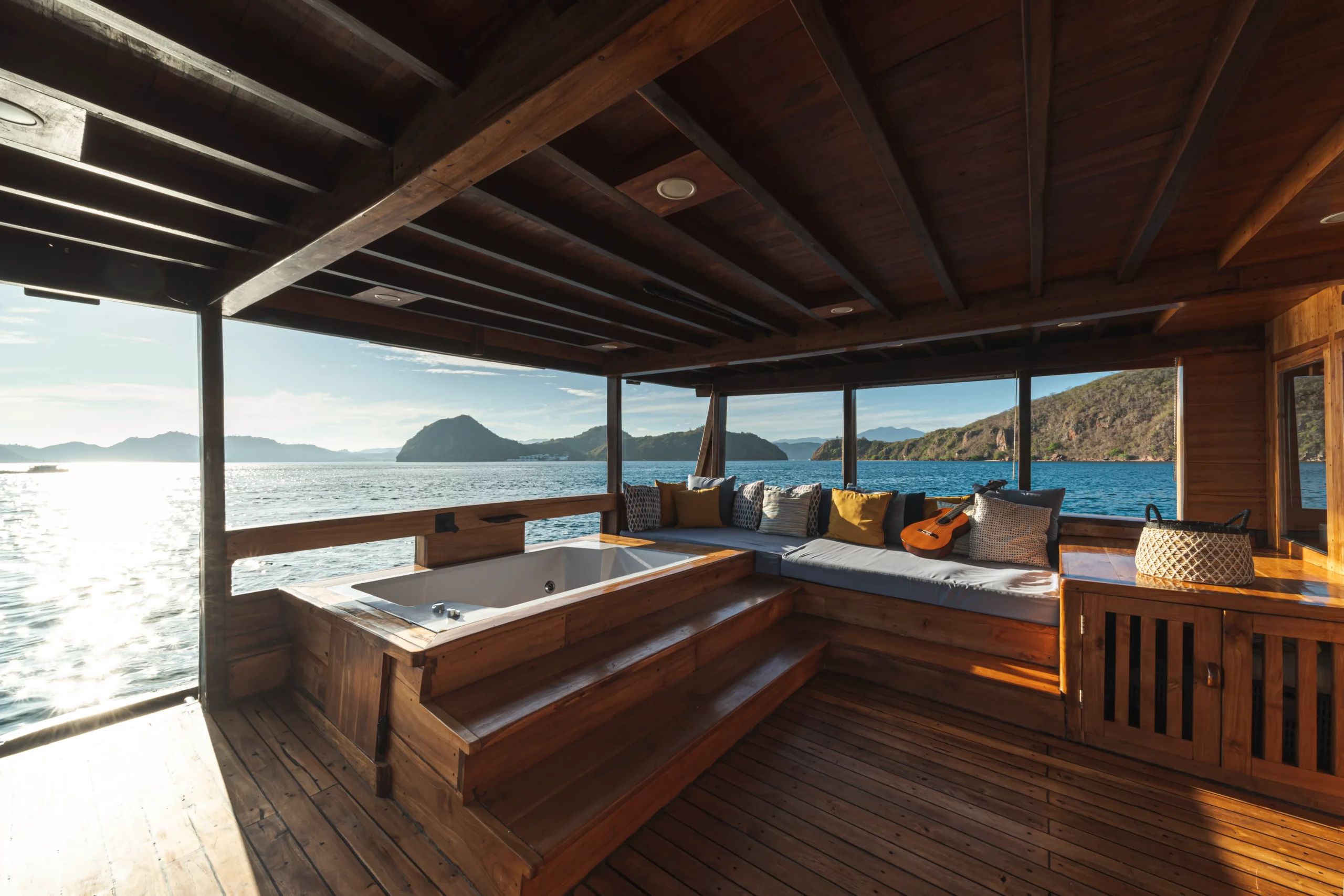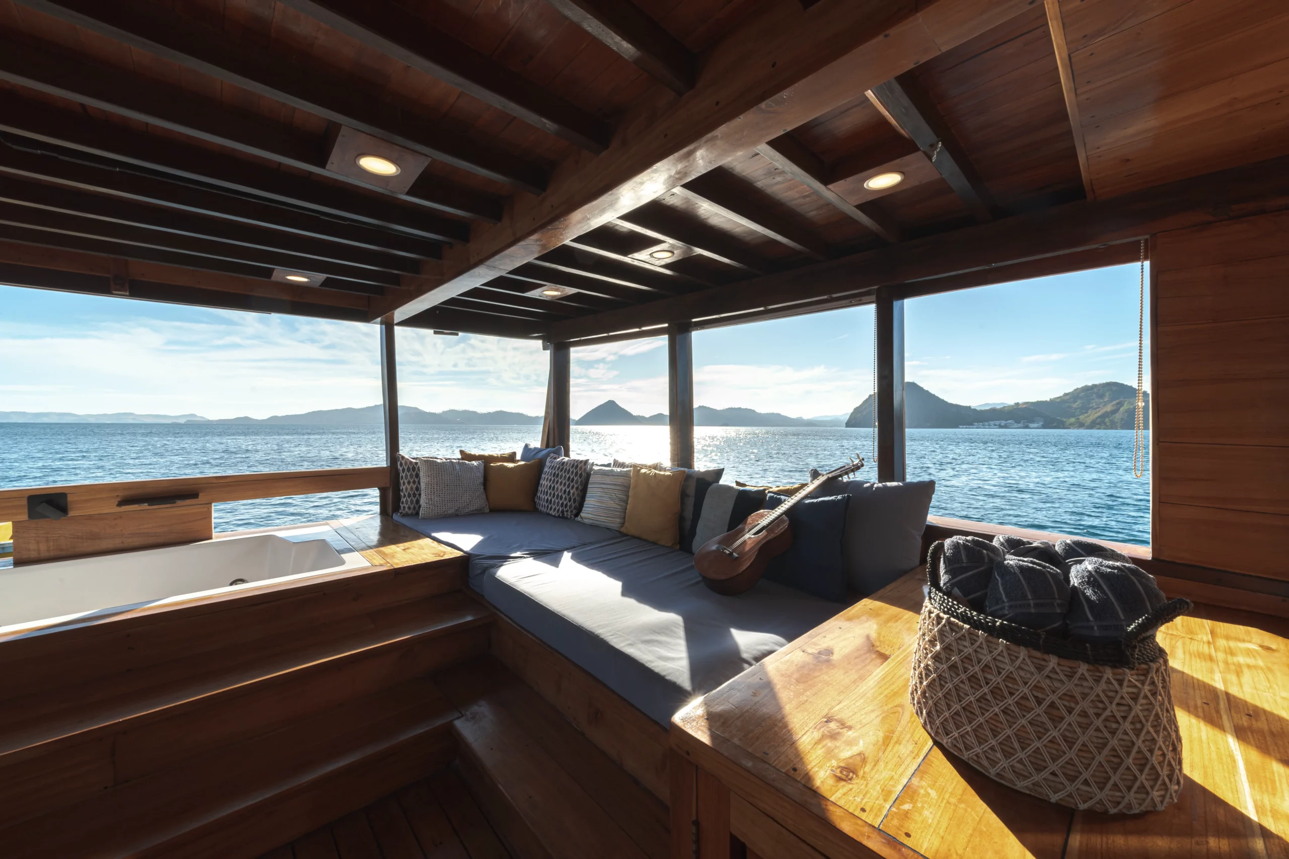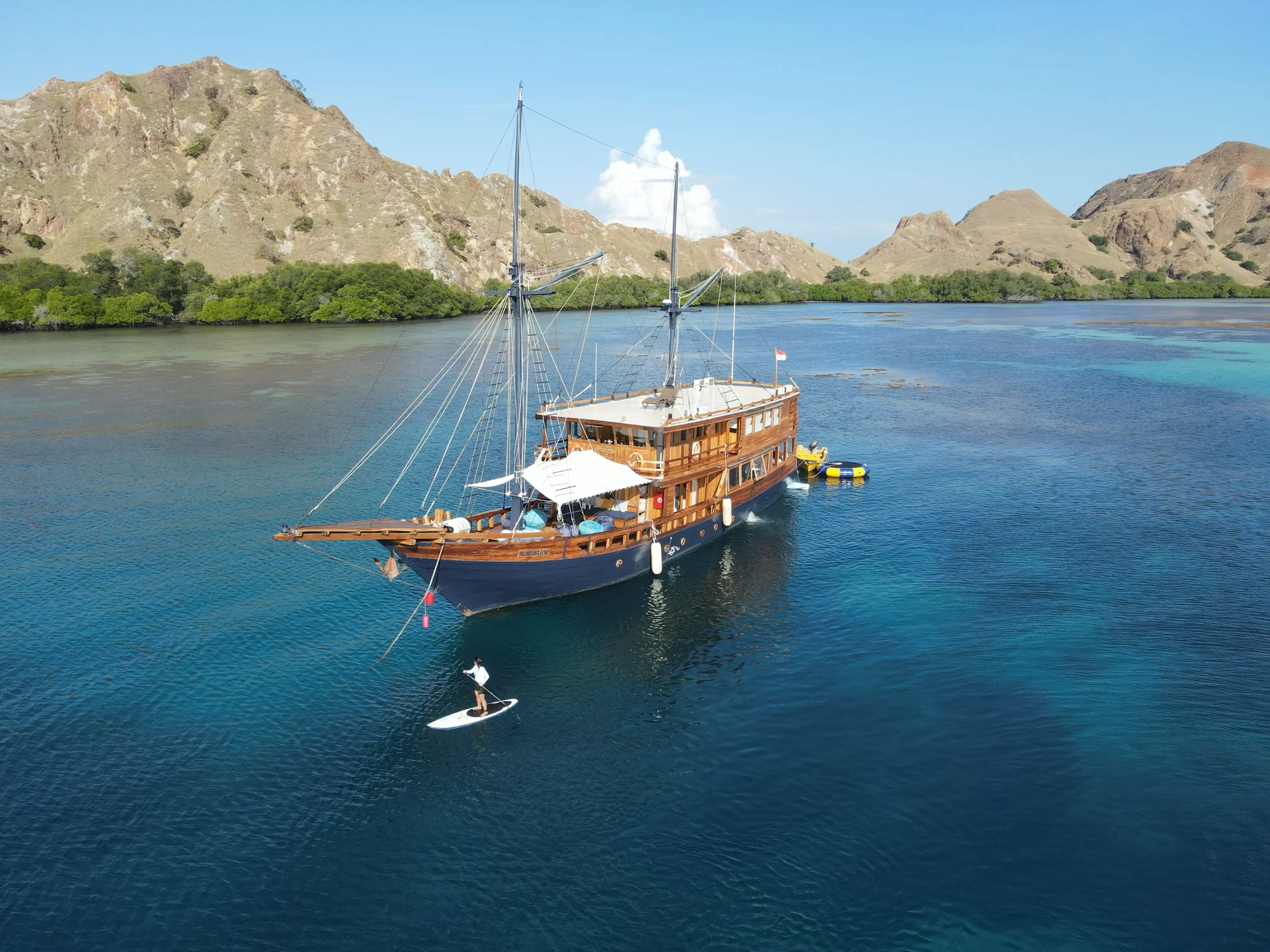 Cruising through the clear waters around Komodo, the Augustine Phinisi offers more than just beautiful views. Guests can enjoy unique, personalized experiences like visiting the Suku Bajo community or take part in marine conservation activities with the « Be a Marine Biologist for a Day » program. The Augustine blends traditional style with personalized service, ensuring each journey is special and memorable.