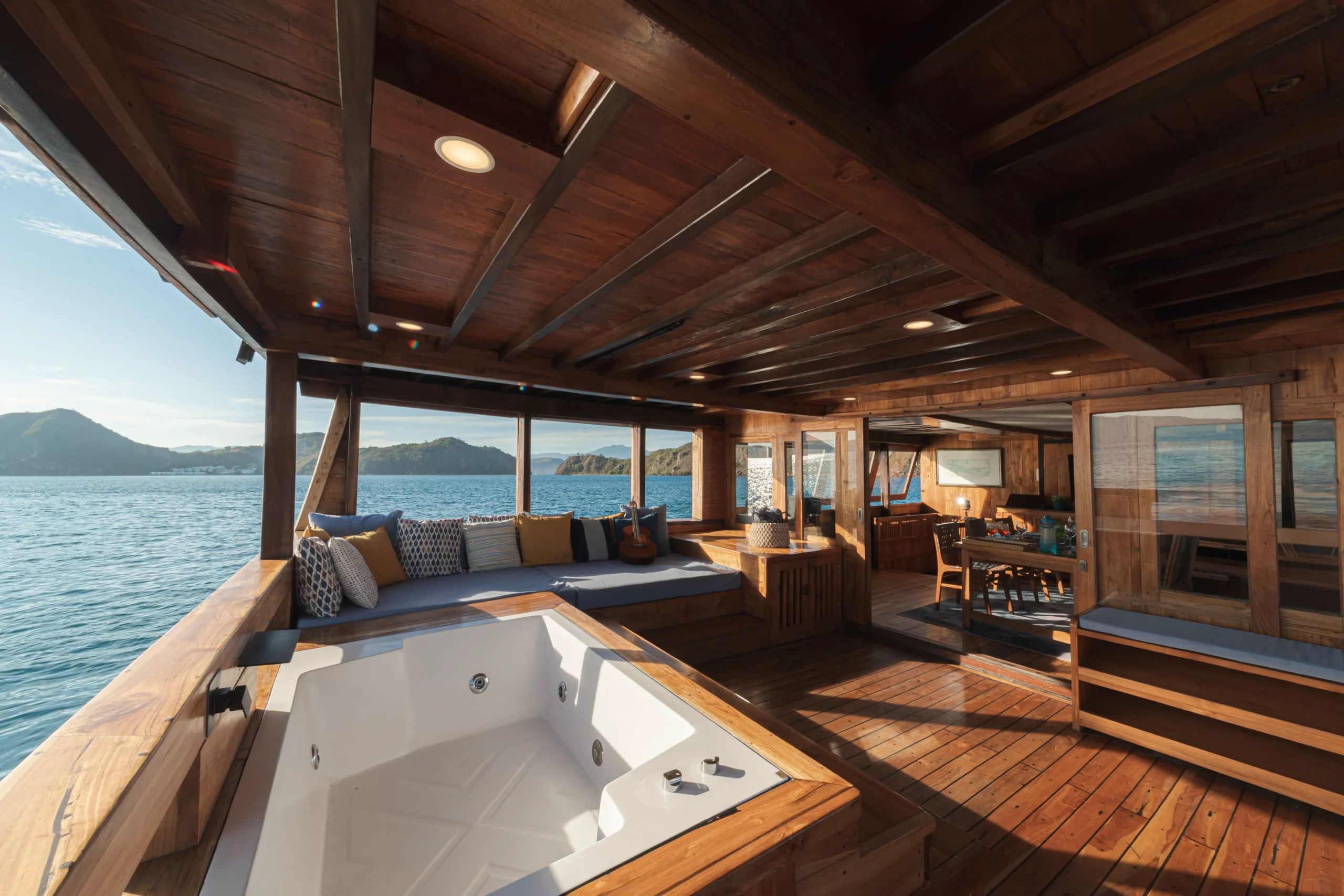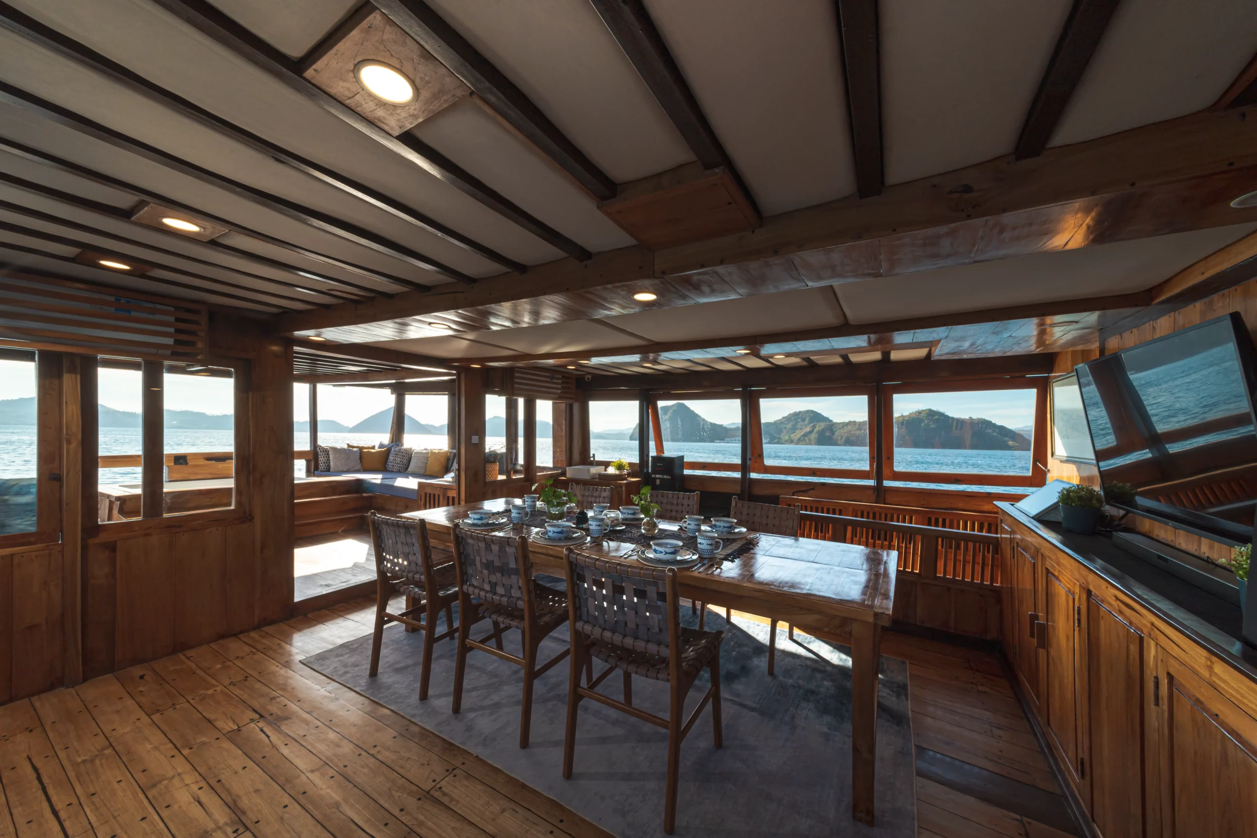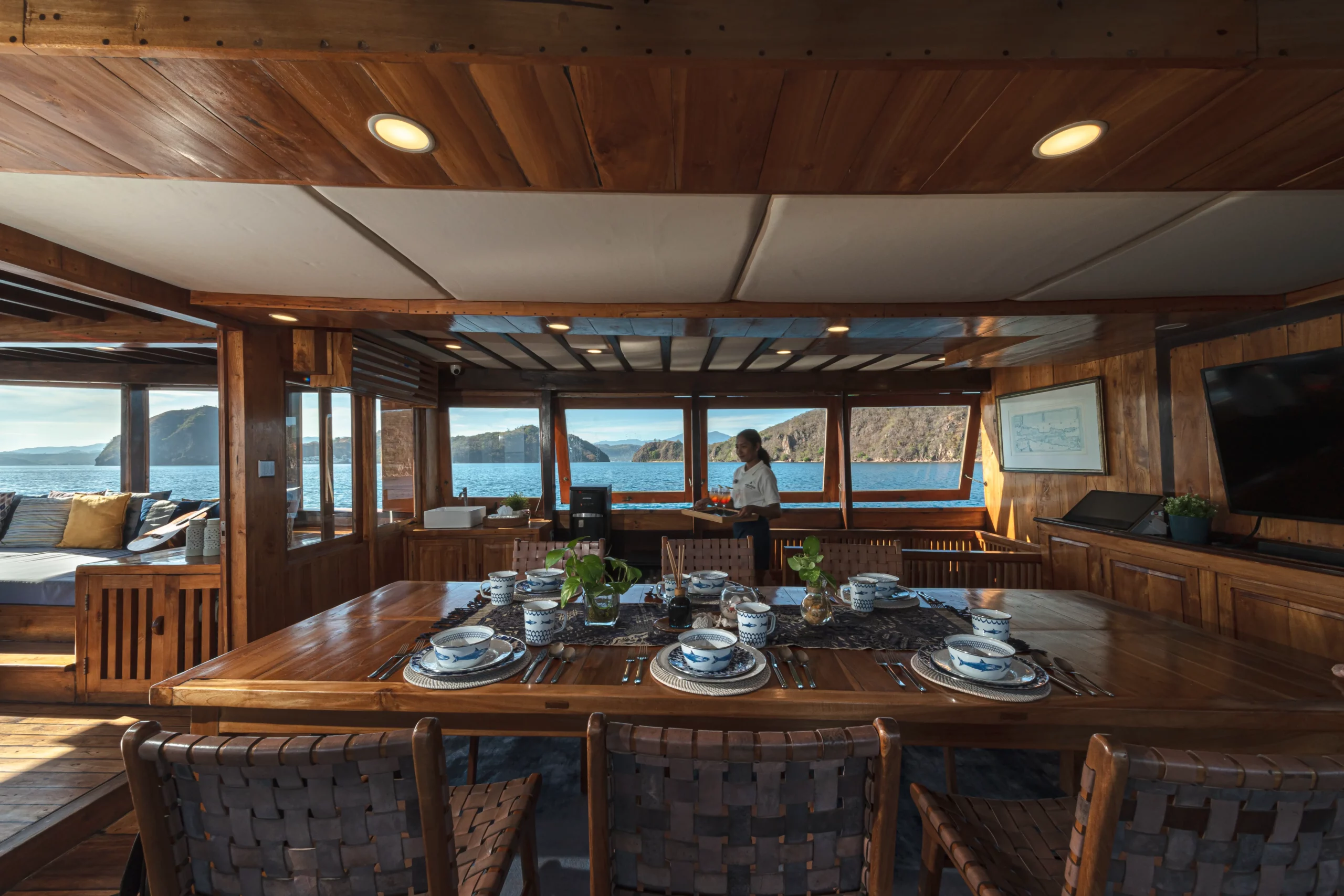 Cruising through the clear waters around Komodo, the Augustine Phinisi offers more than just beautiful views. Guests can enjoy unique, personalized experiences like visiting the Suku Bajo community or take part in marine conservation activities with the « Be a Marine Biologist for a Day » program. The Augustine blends traditional style with personalized service, ensuring each journey is special and memorable.