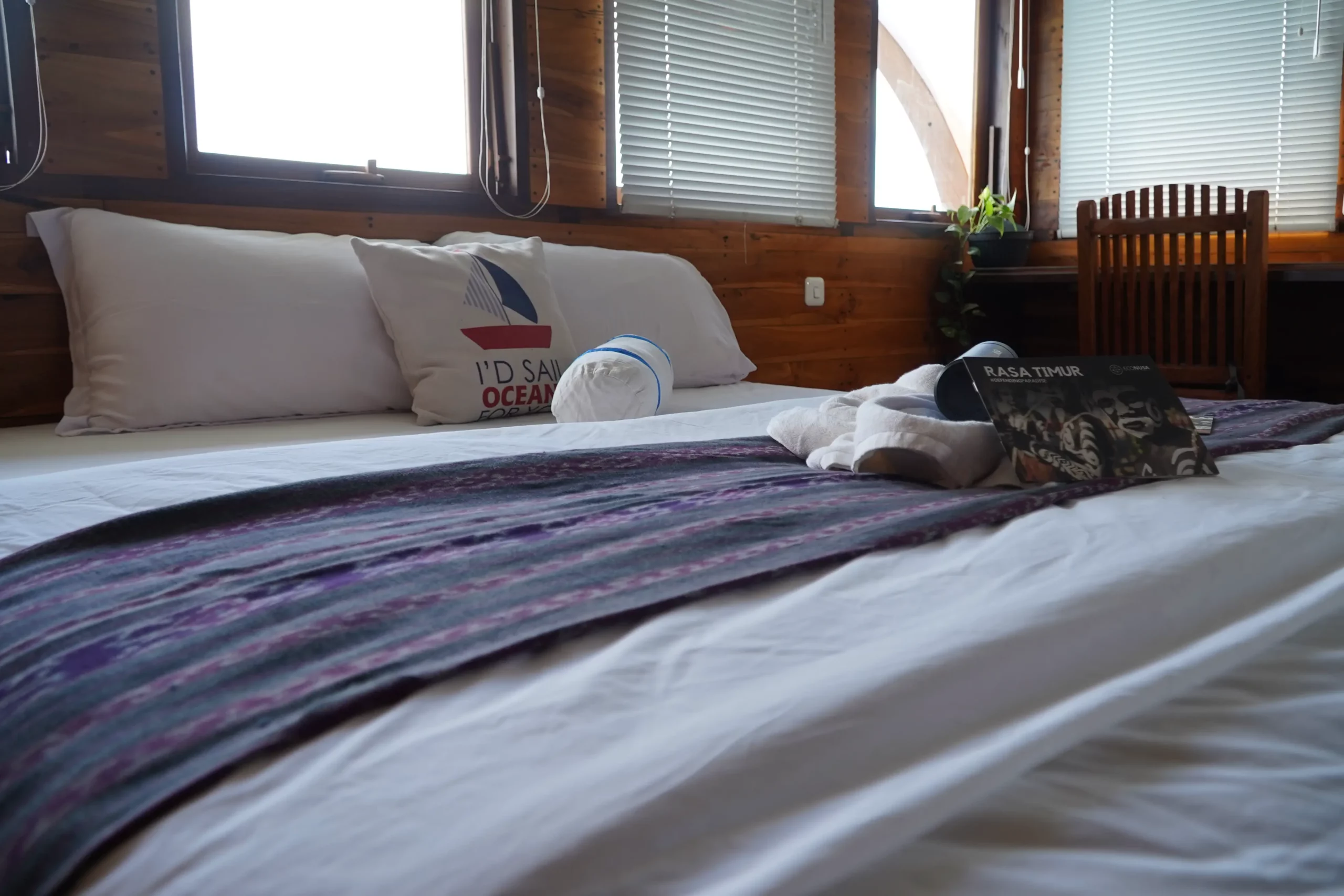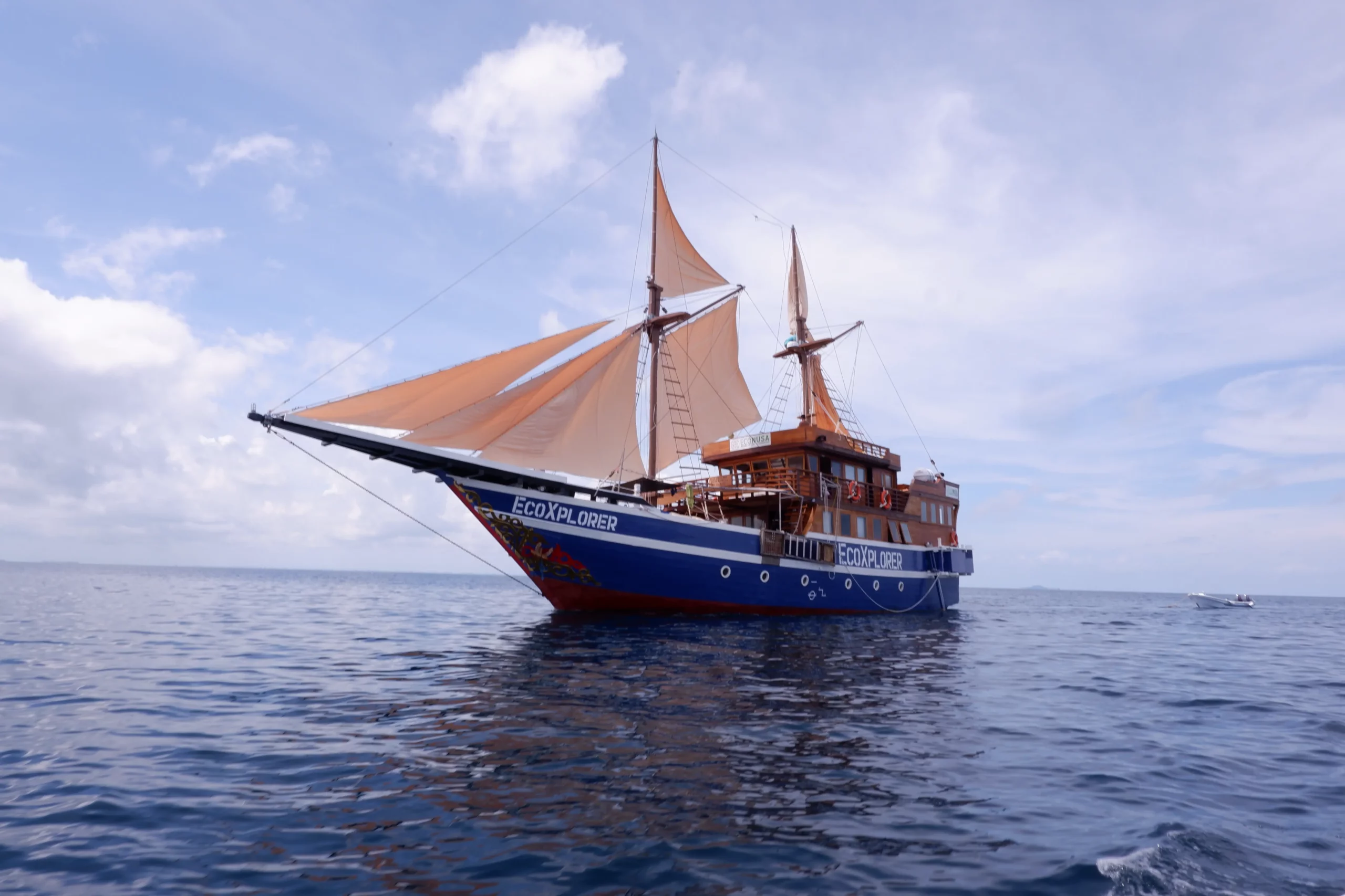 EcoXplorer is more than just a boat. This vessel was rebuilt in 2022 in South Sulawesi with a traditional Phinisi design and focuses on both ecotourism and supporting local communities in Eastern Indonesia. Originally named « Imbekwan » and used for marine patrols, the boat was donated and transformed to continue its mission of sustainability and community support. All profits from the trips go directly to the EcoNusa Foundation, funding projects that protect ecosystems and provide essential health and education services.