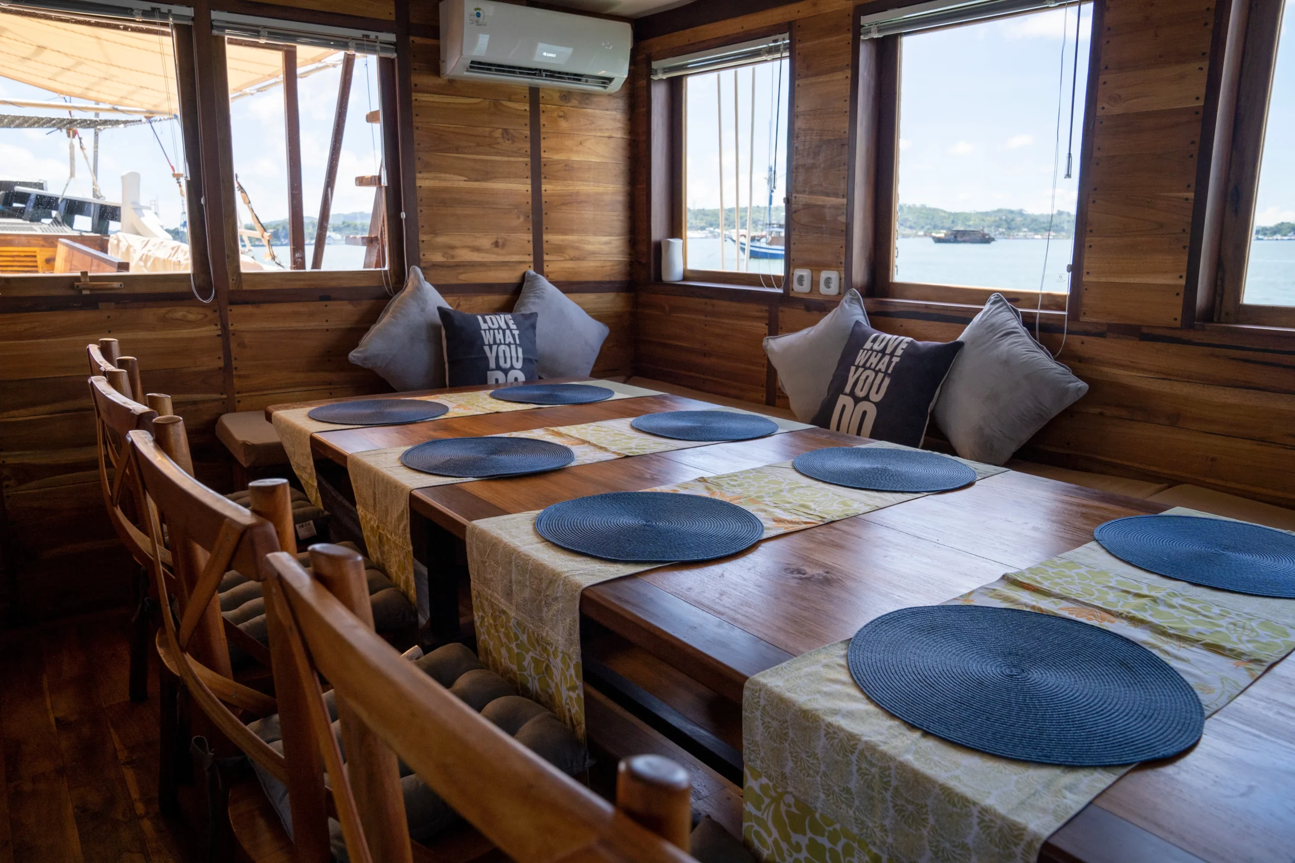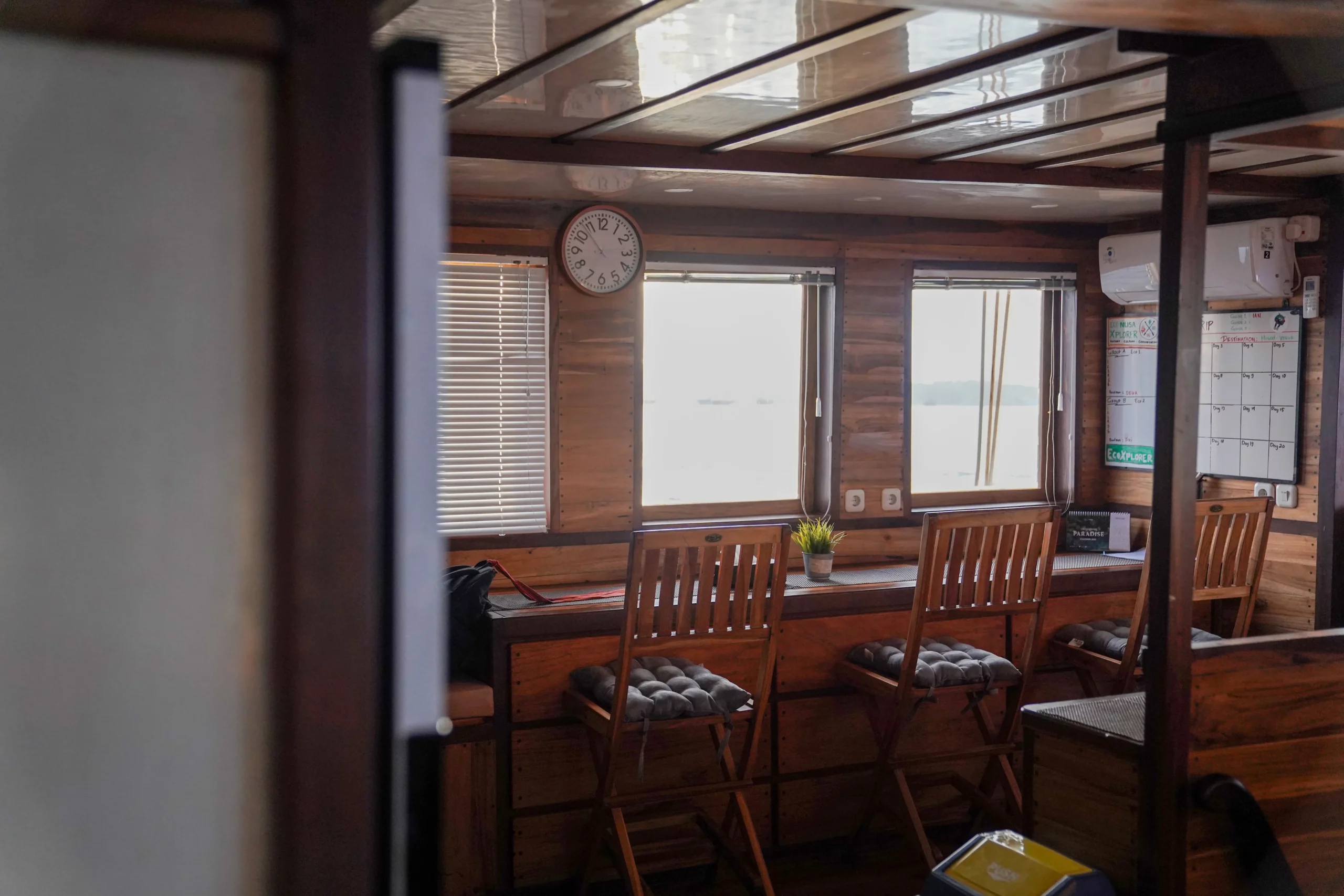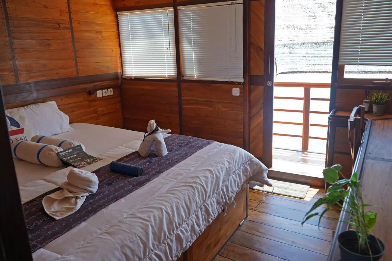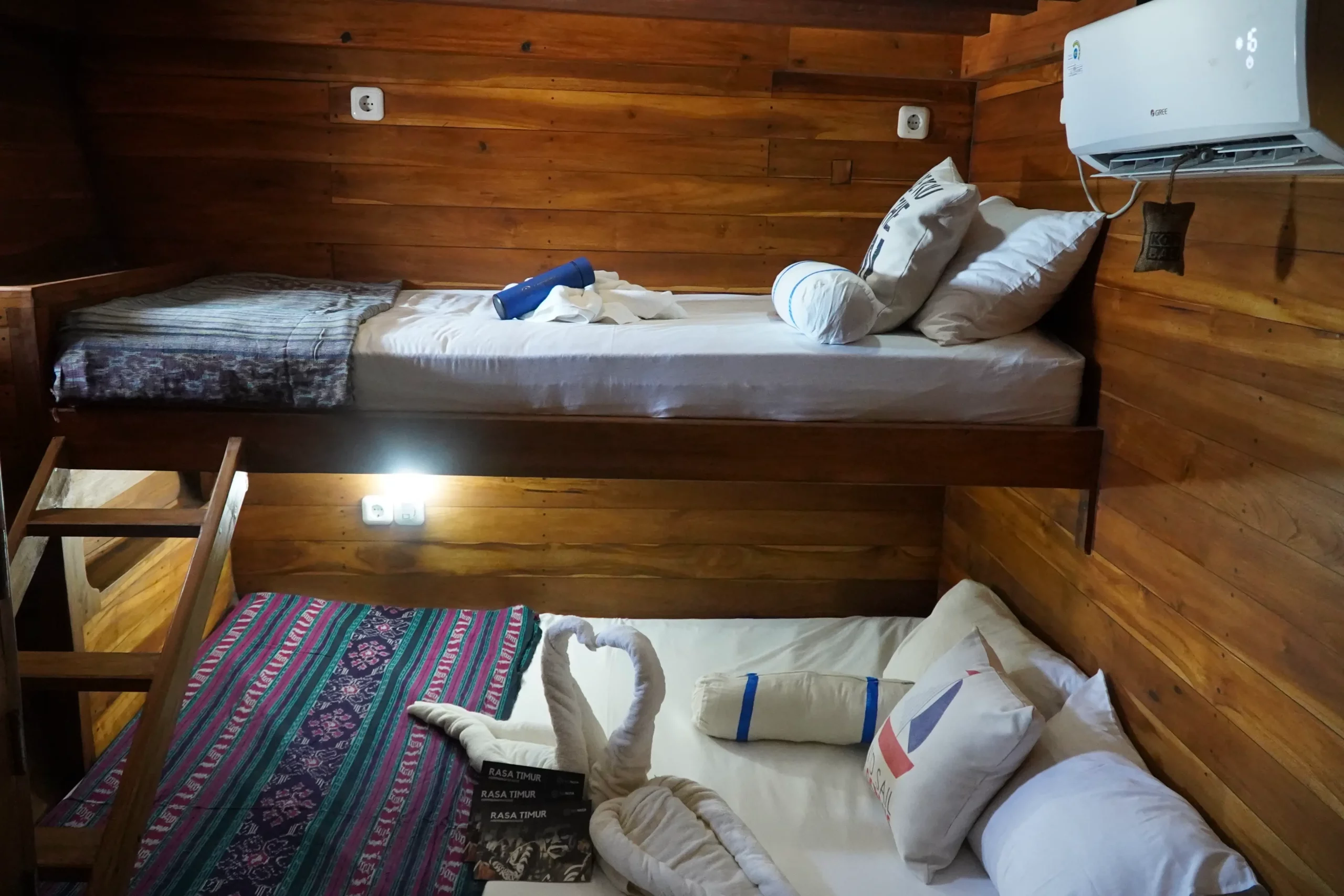 The Deluxe rooms consist of three options: Intsia, Myristica, and Avicennia. Intsia, located on the upper deck, features a queen-size bed for two guests, while Myristica and Avicennia, both on the bottom deck, each have two bunk beds (one double and one single) accommodating three guests per room. Together, the Deluxe rooms can fit a total of eight guests. Note that Intsia is occasionally unavailable for research and education purposes.