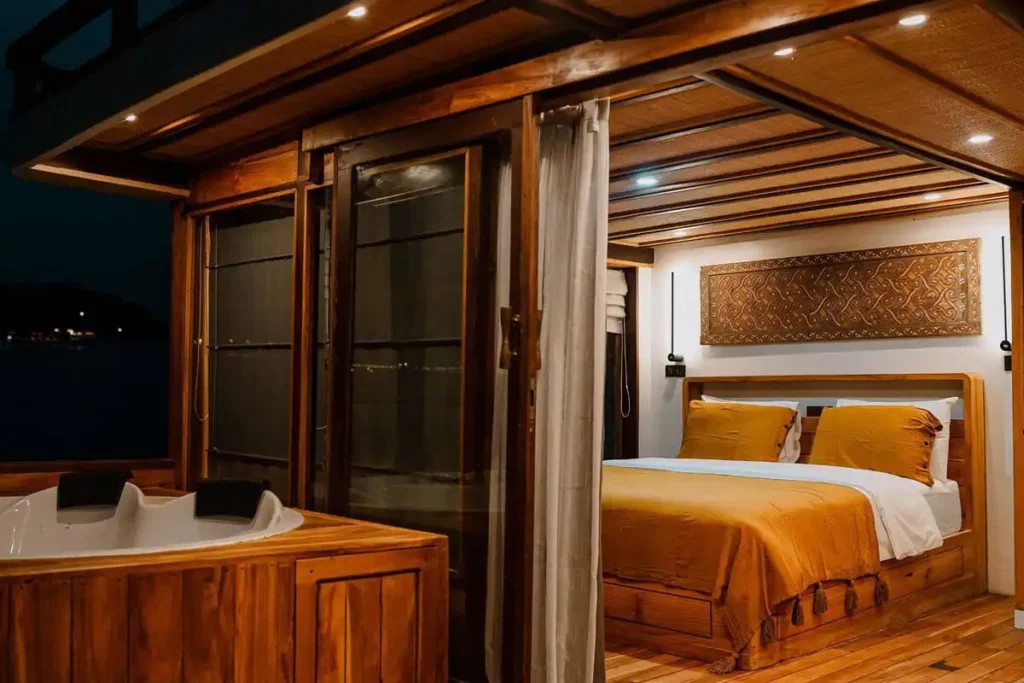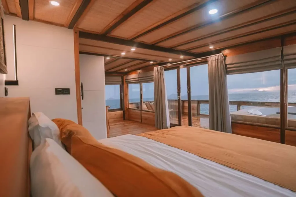 The Master Cabin of the boat, with its private balcony and jacuzzi.