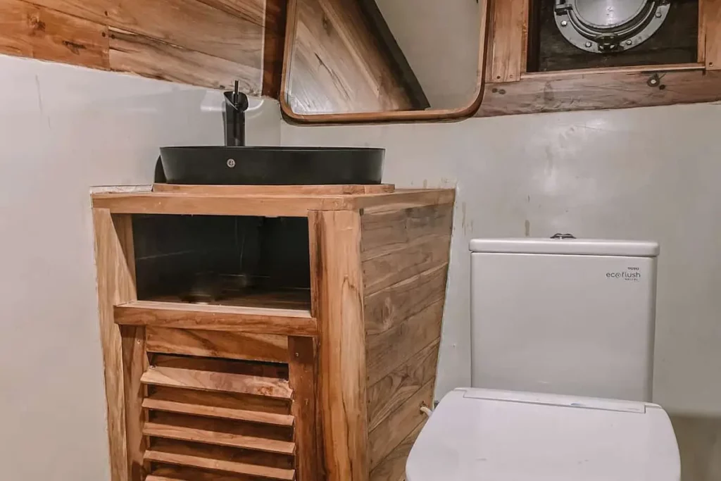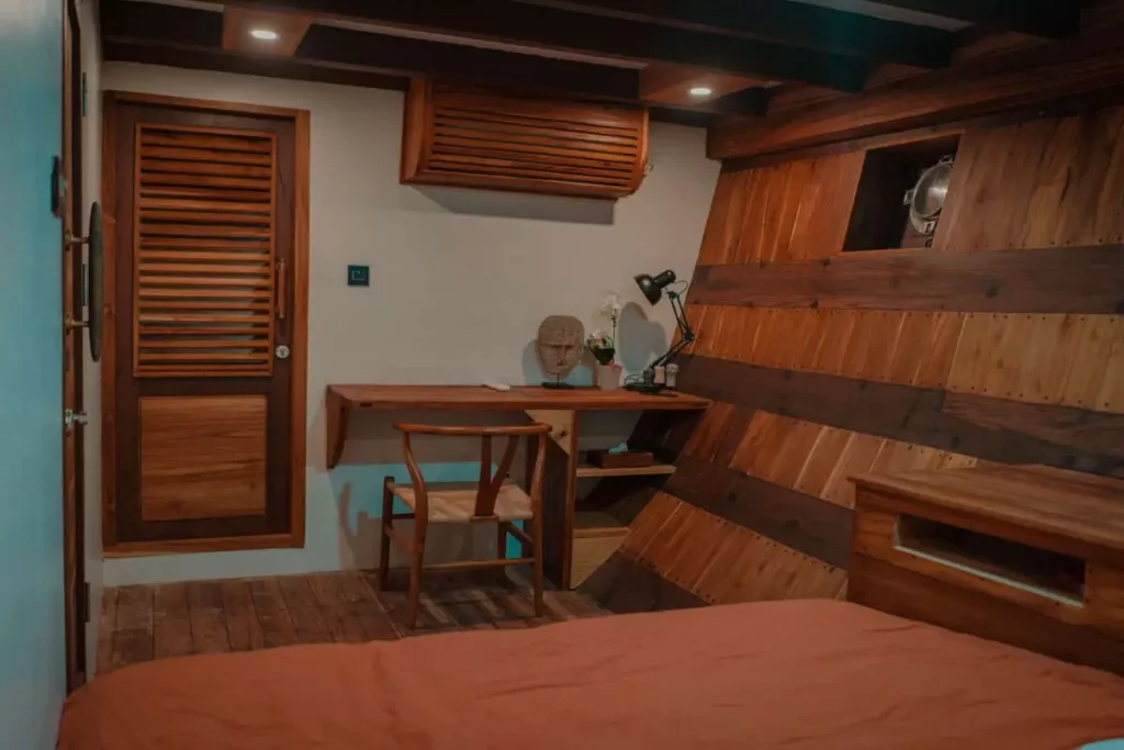 The midship area of Elbark is a heaven of tranquility and comfort. You will find there a lounge, entertainment and a bar, as well as a hangout place. It’s the perfect spot to unwind and enjoy the company of your loved ones while exploring the incredible waters and scenery of Indonesia.