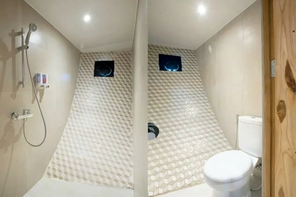 Indo Master takes your comfort seriously. The spacious saloon is the heart of the boat, where delicious meals are shared, dive plans are made, and exchange stories. Kick back in their comfy seating, grab a drink from the cocktail bar, or catch up on your favorite shows on our big-screen TV.