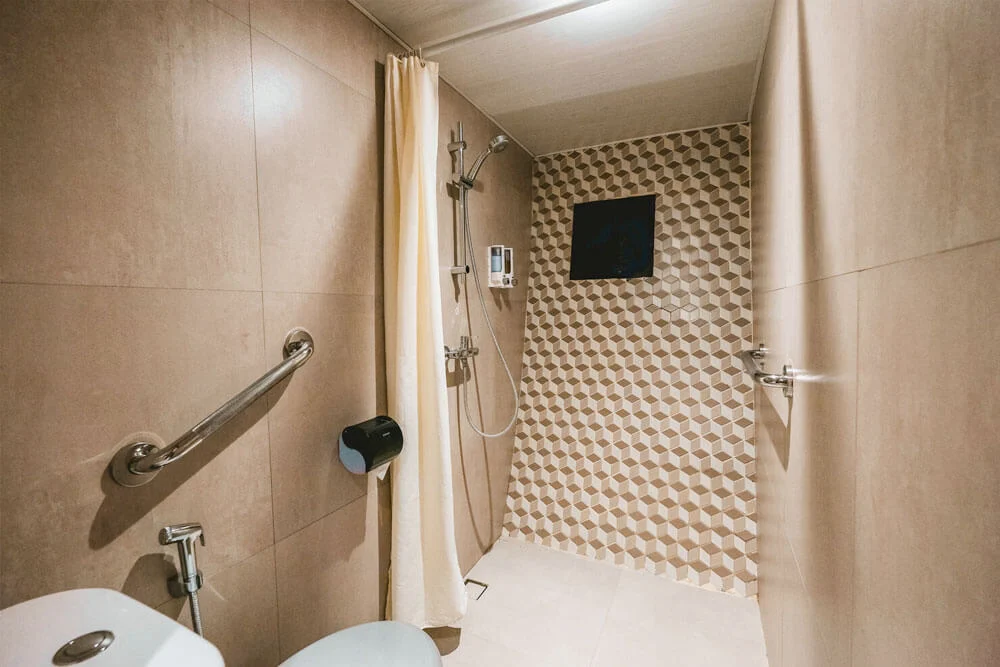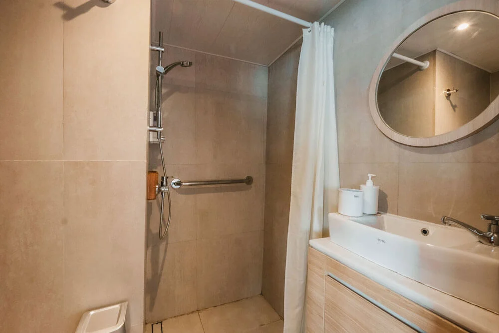 Cabins 3 & 4 are large twin-bed cabins with spectacular ocean views & Juliet balconies. They come with individually controlled air conditioning, spacious storage space, and private bathrooms with hot water.