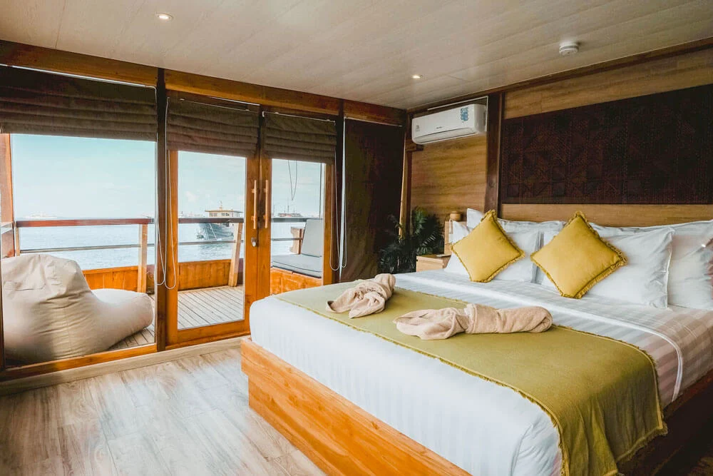 The Indo Master liveaboard boasts 9 cabins and can accommodate up to 18 guests. Each cabin comes with air-conditioning and an ensuite bathroom. Whether you’re traveling solo, with a partner, or with family, Indo Master has the perfect space for you to unwind after a day of underwater exploration.