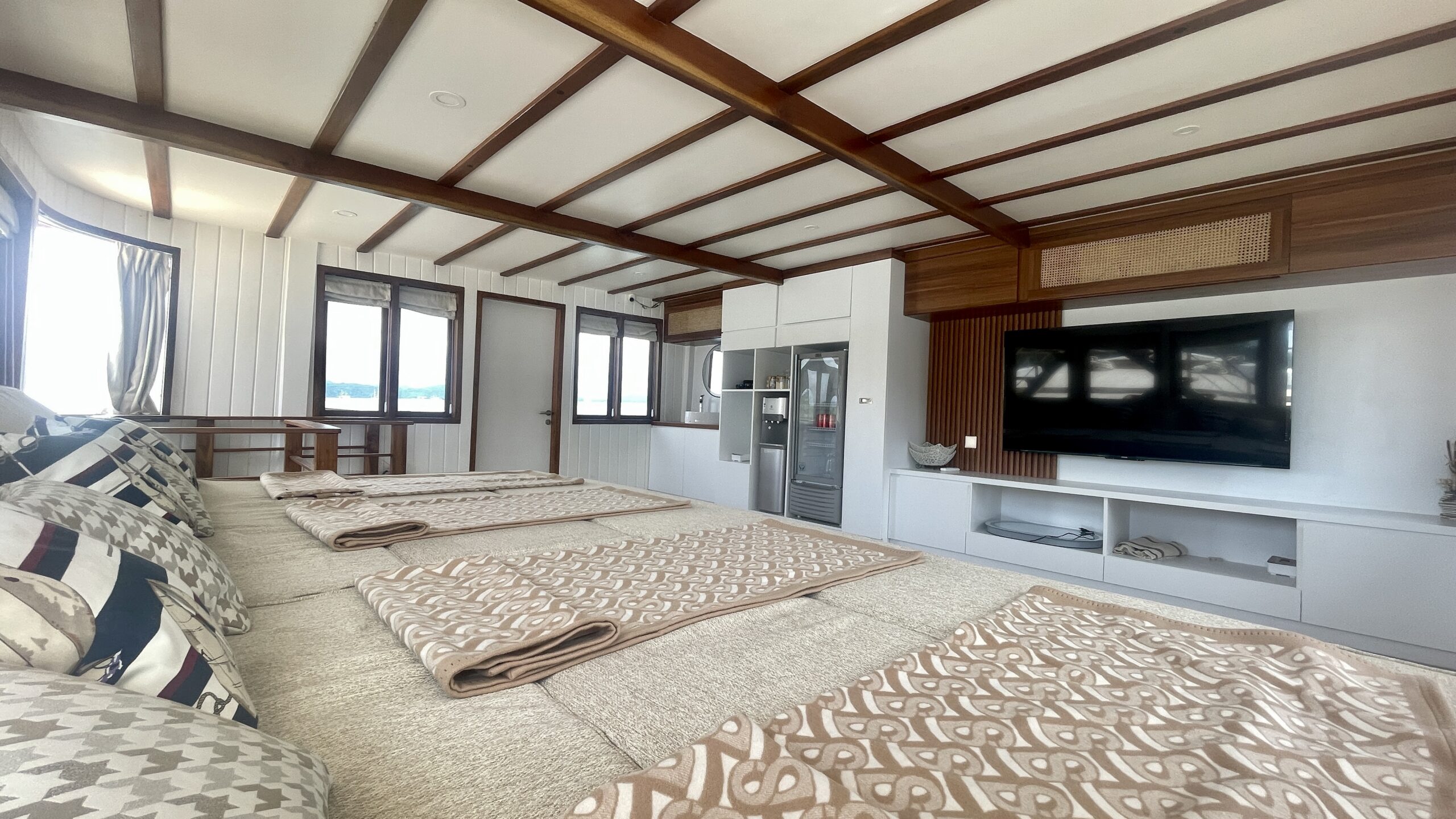 Unwind on their spacious sundeck, where you can soak up the sun or stargaze under the open sky. It’s the perfect place to kick back and enjoy the stunning views of Komodo. The entertainment area is the place to be for laughter and good times with friends and family. From karaoke nights to movie marathons, there’s never a dull moment aboard Le Costa.
