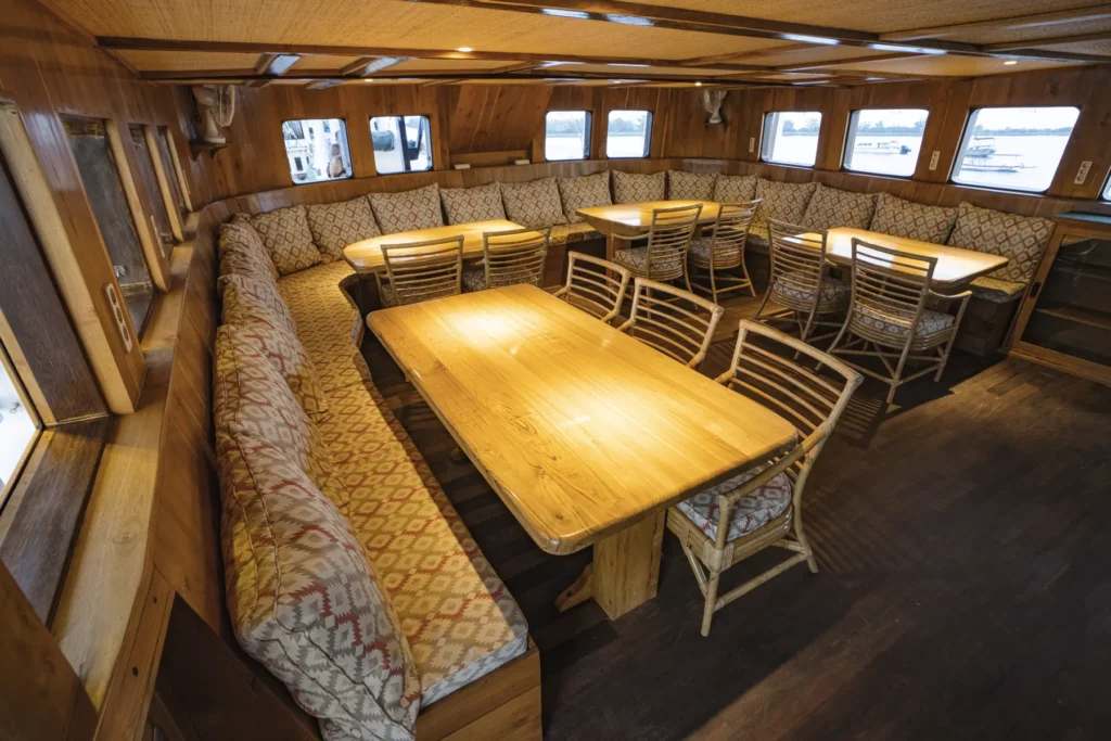 Pindito offers 8 cozy cabins blending traditional Pinisi style with modern comfort. Each cabin is air-conditioned, with a private ensuite bathroom, hot shower, and daily housekeeping. With flexible layouts, 6 convertible double/twin cabins, and 2 twin cabins, They welcome up to 16 guests, ensuring an intimate and personalized liveaboard experience. After every adventure, your cabin is the perfect retreat to relax, recharge, and wake ready for the next day at sea.