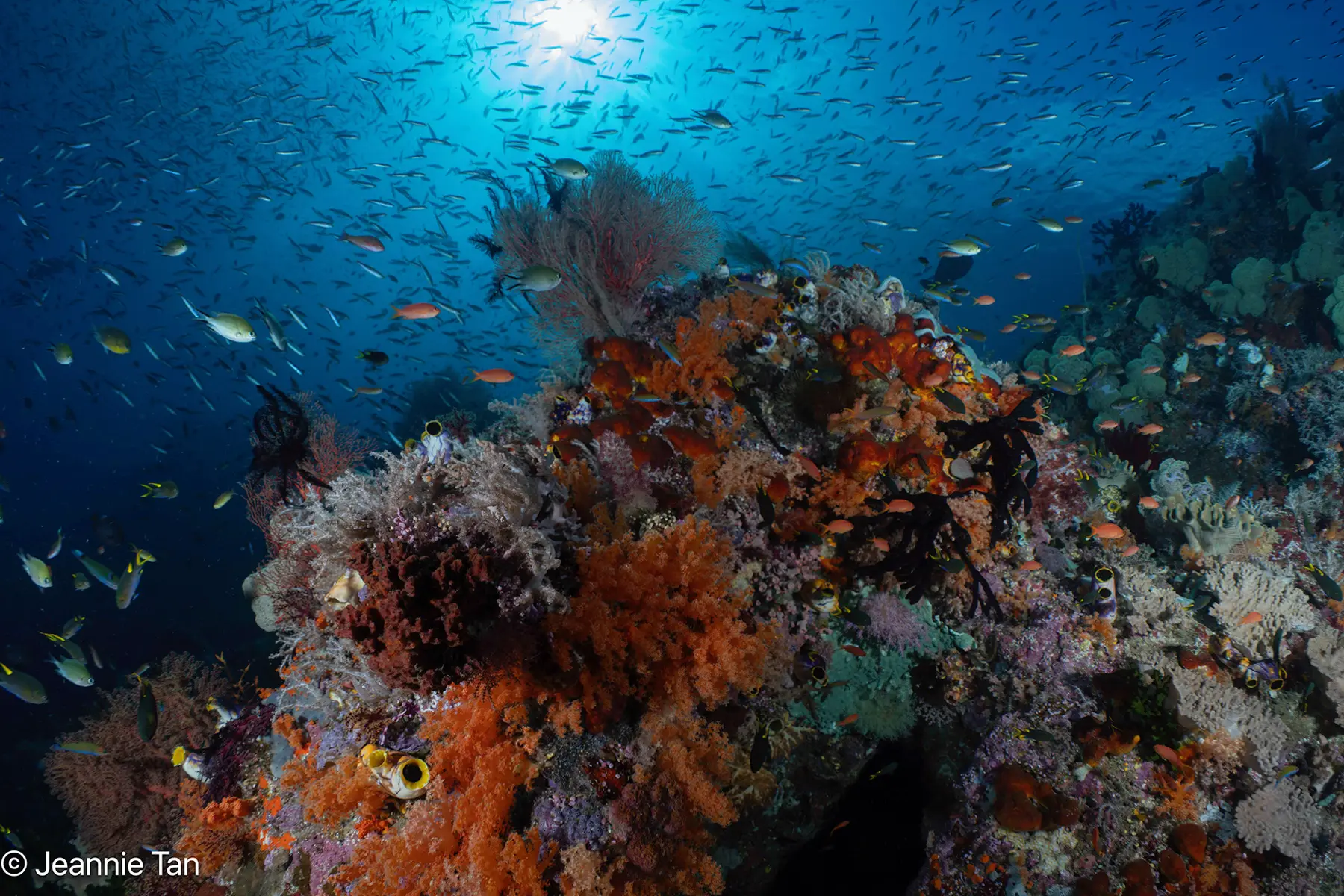 A magical underwater world in West Papua, home to vast soft coral gardens, towering limestone cliffs, whale sharks, and newly discovered species. Every dive feels like a first exploration.