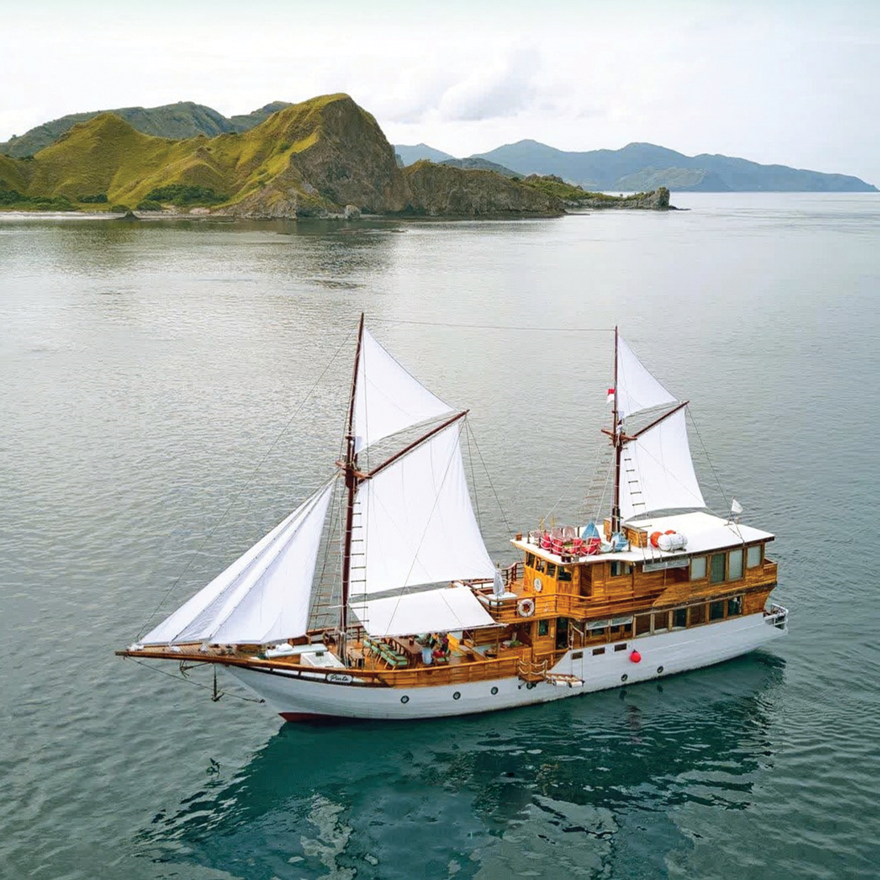 The Pinta Liveaboard takes you to discover the beauty of Komodo National Park. This traditional wooden phinisi boat boasts a modern minimalist design that is nothing short of Instagram-worthy. It artfully harmonizes luxury and affordability, creating the illusion of a floating hotel at an accessible price point. Thanks to its upgraded engine, it reduces cruising time, allowing you more leisure to savor each destination.
