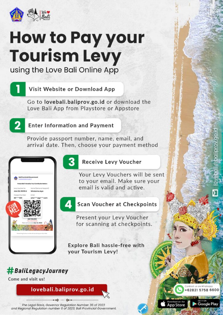 Vous pouvez payer et demander une exonération via l’application Love Bali, disponible sur l’App Store et le Play Store, ou en visitant le site lovebali.baliprov.go.id. La procédure est simple, la plupart des touristes optant pour un simple paiement par carte en ligne. Une fois le paiement confirmé, vous recevrez un bon d’échange par courrier électronique. Vous devez le conserver sur votre smartphone pour qu’il puisse être scanné à l’aéroport de Bali et dans les ports maritimes.