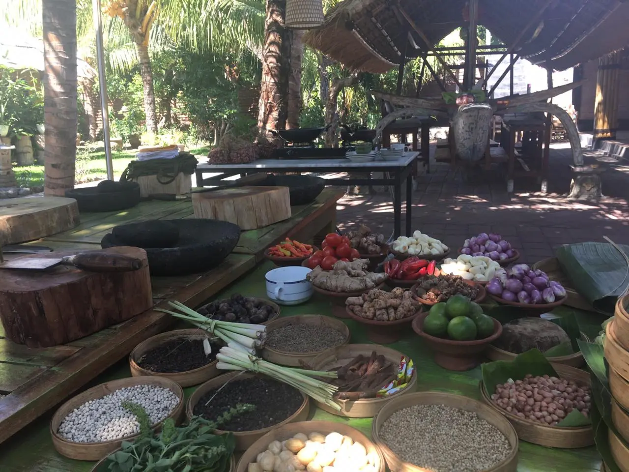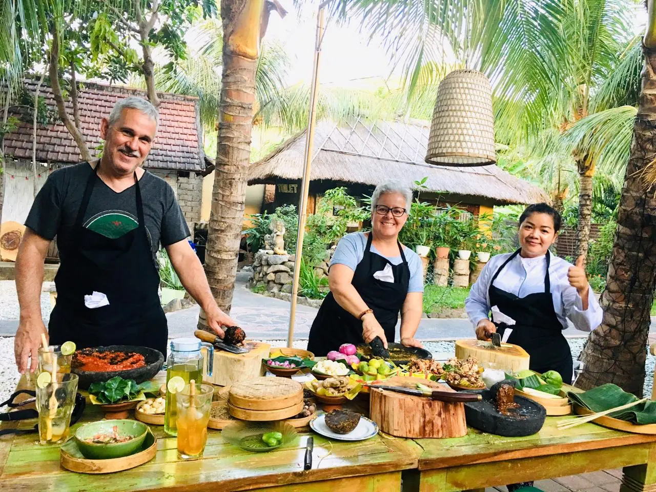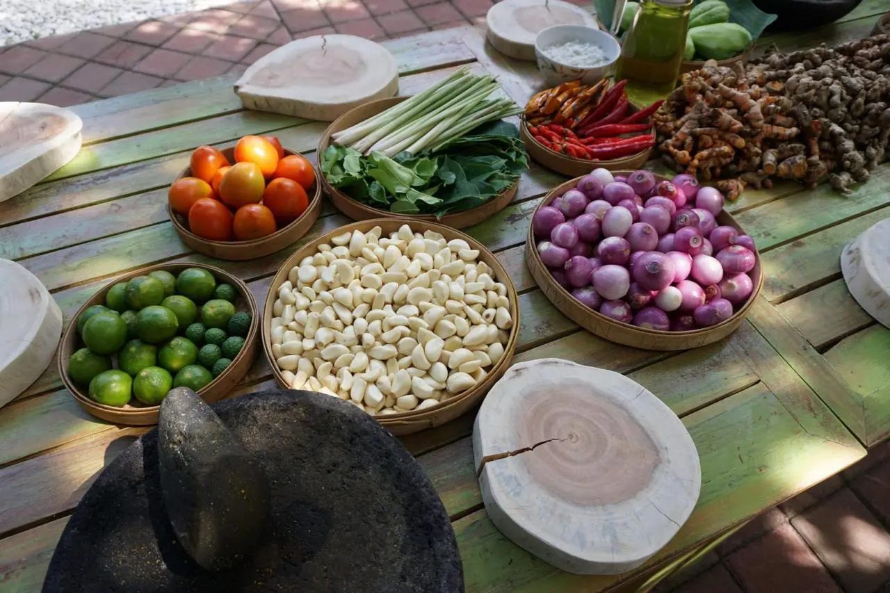 Discover the art of Balinese cooking with a hands-on class that lets you create traditional dishes using fresh ingredients picked straight from the garden. In a cozy Balinese kitchen setting, you’ll learn all about Bali’s rich culinary heritage through iconic local dishes like pesan be pasih base bawang jahe (grilled fish in banana leaf with ginger onion sauce), chicken betutu, ayam base sune cekuh (chicken with aromatic herbs and turmeric) and many more.