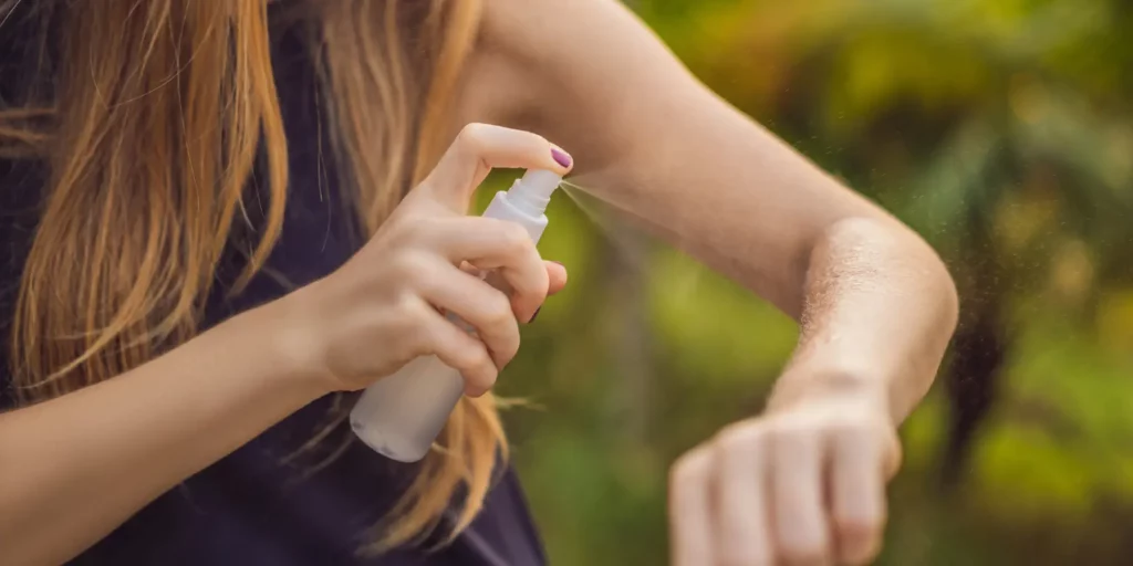 - Apply a repellent containing DEET (20-30%) or picaridin to exposed skin
