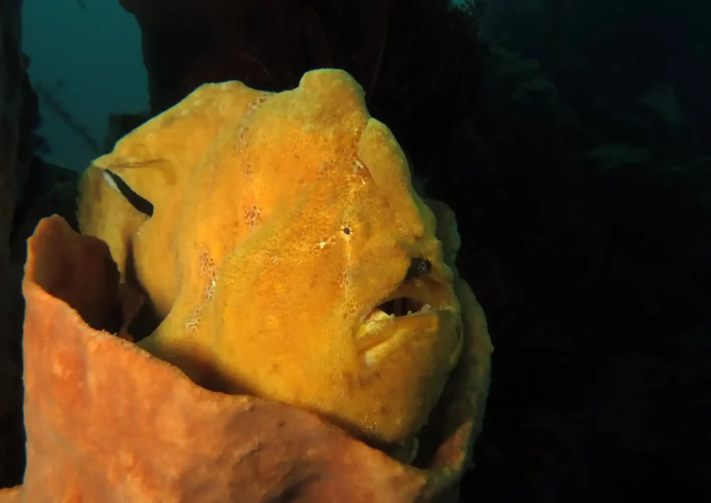 Divers rarely see this strike – it’s too fast. But many witness frogfish “yawns,” when they stretch their jaws wide, revealing just how enormous that mouth can be.