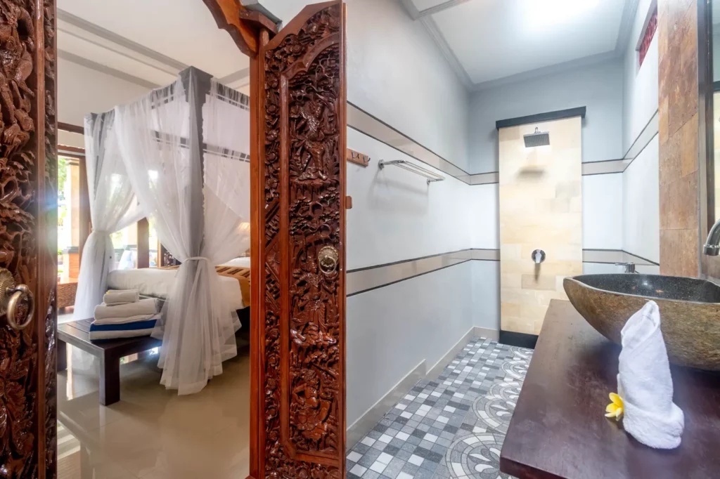 Spacious and authentically styled, the Balinese Suite offers 55 sqm of space with a luxurious king-size bed. Inspired by traditional Balinese design, it provides a perfect blend of local culture and contemporary comfort, making it ideal for those seeking a unique cultural experience. Guests can choose between a room with a bathtub or a no-bathtub option, ensuring flexibility for personal preferences.