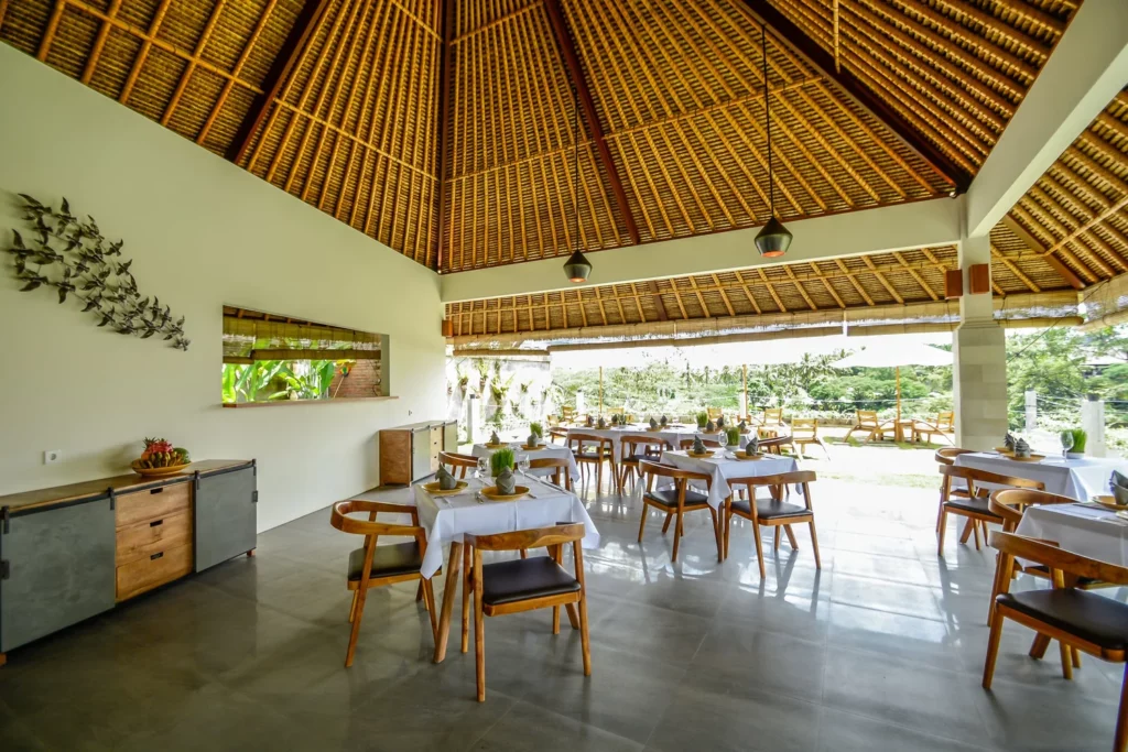 Hidden Paradise Ubud offers two inviting dining spots: Pandora Restaurant, serving a well-balanced menu in a garden setting or on the terrace overlooking the Petanu River valley, and the Hidden Gem Lounge & Bar, where guests can relax with drinks and light bites while enjoying the view.