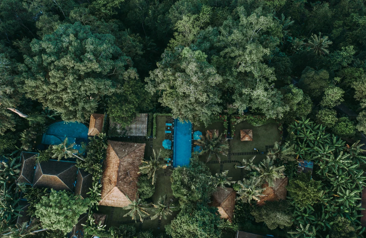 Hidden Paradise Ubud is a quiet river-valley retreat in the heart of Bali, about 10 minutes from central Ubud. Set above the Petanu River, its 20 suites and villas blend modern comfort with Balinese details, many facing west for soft sunset light. An infinity pool sits on the valley’s edge with lush green views all around.