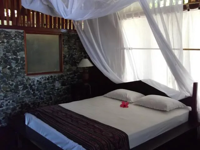Deluxe bungalows are situated in front of the hotel, either directly on the beach or with direct beach access. Each bungalow includes a private bathroom, a comfortable bed (double, twin, or double plus single), chairs, a table, and a wardrobe. They also feature a veranda with chairs and a table. All beds come with mosquito nets. These bungalows are ideal for couples or groups of friends looking for a relaxing beachside stay.