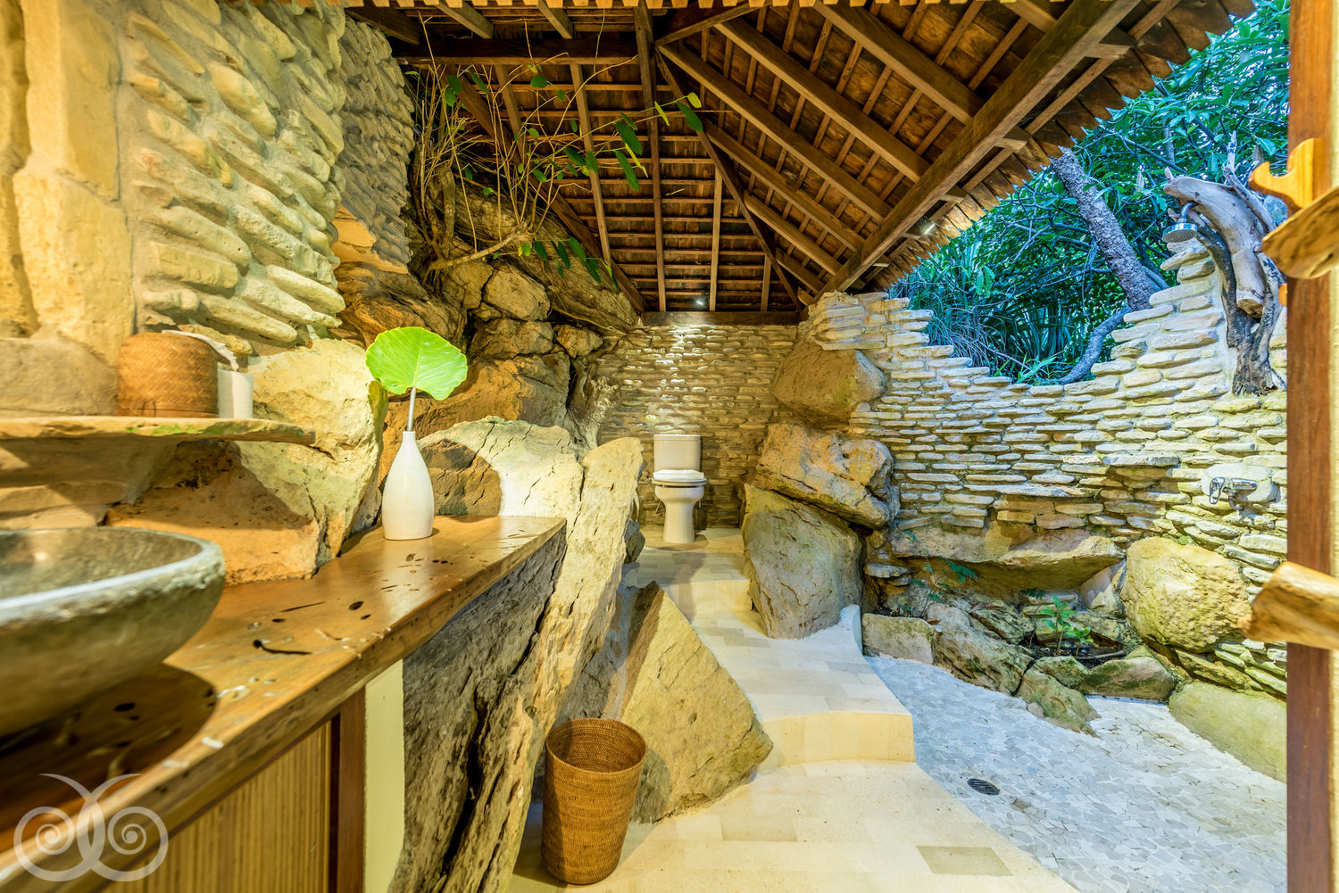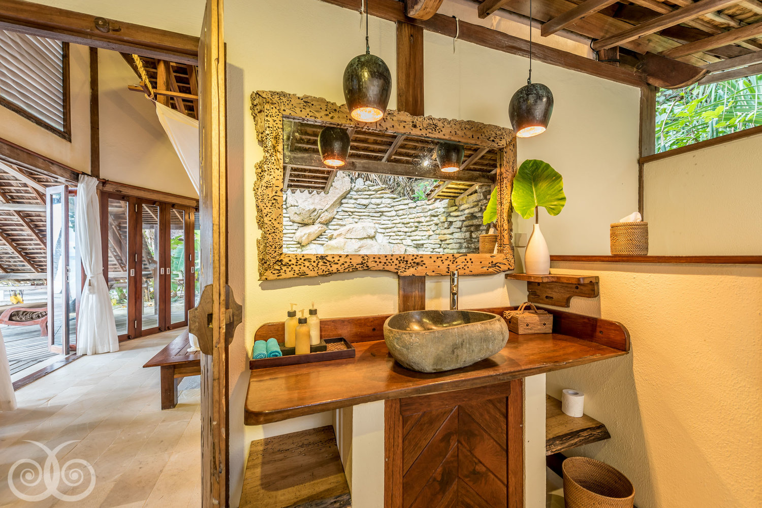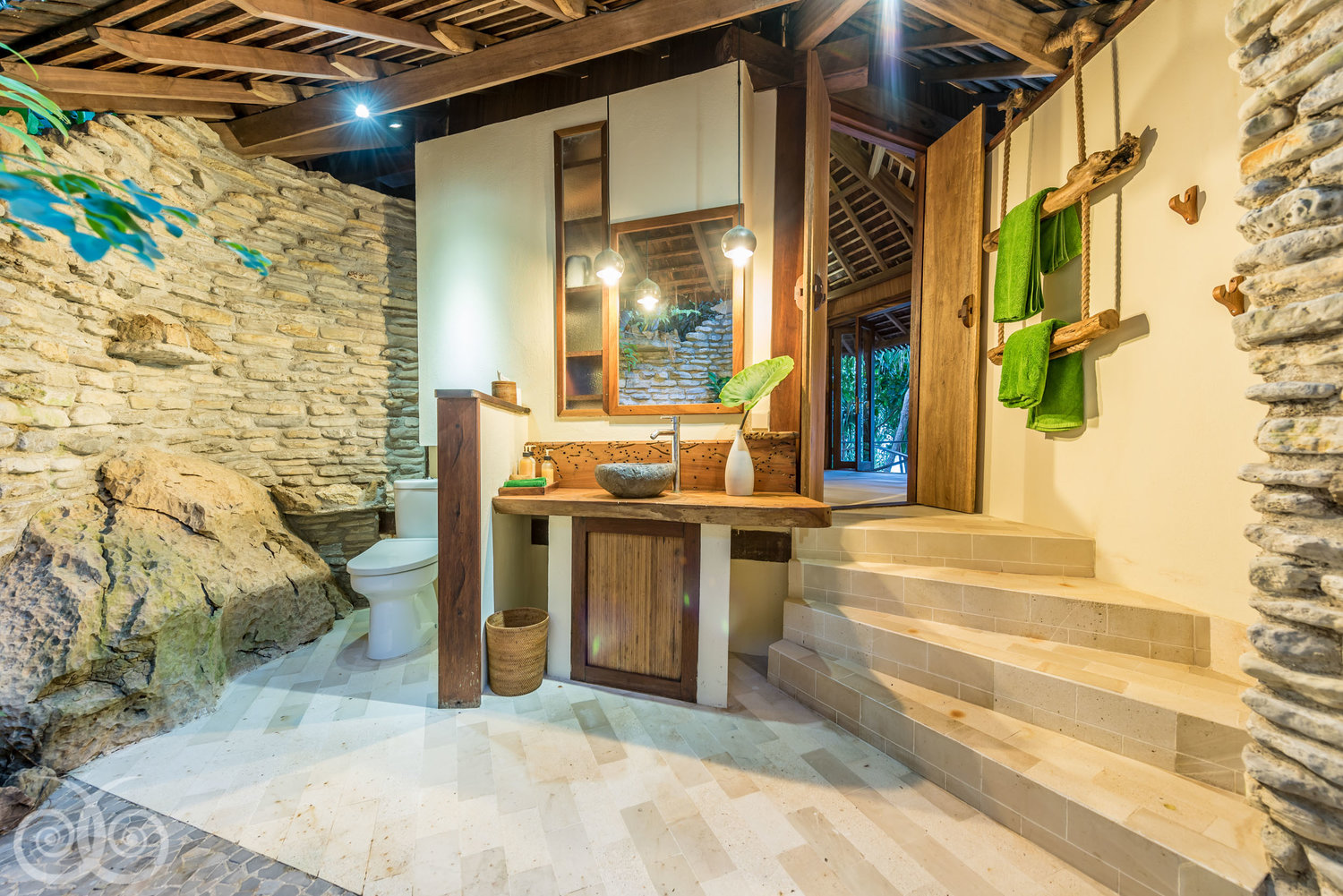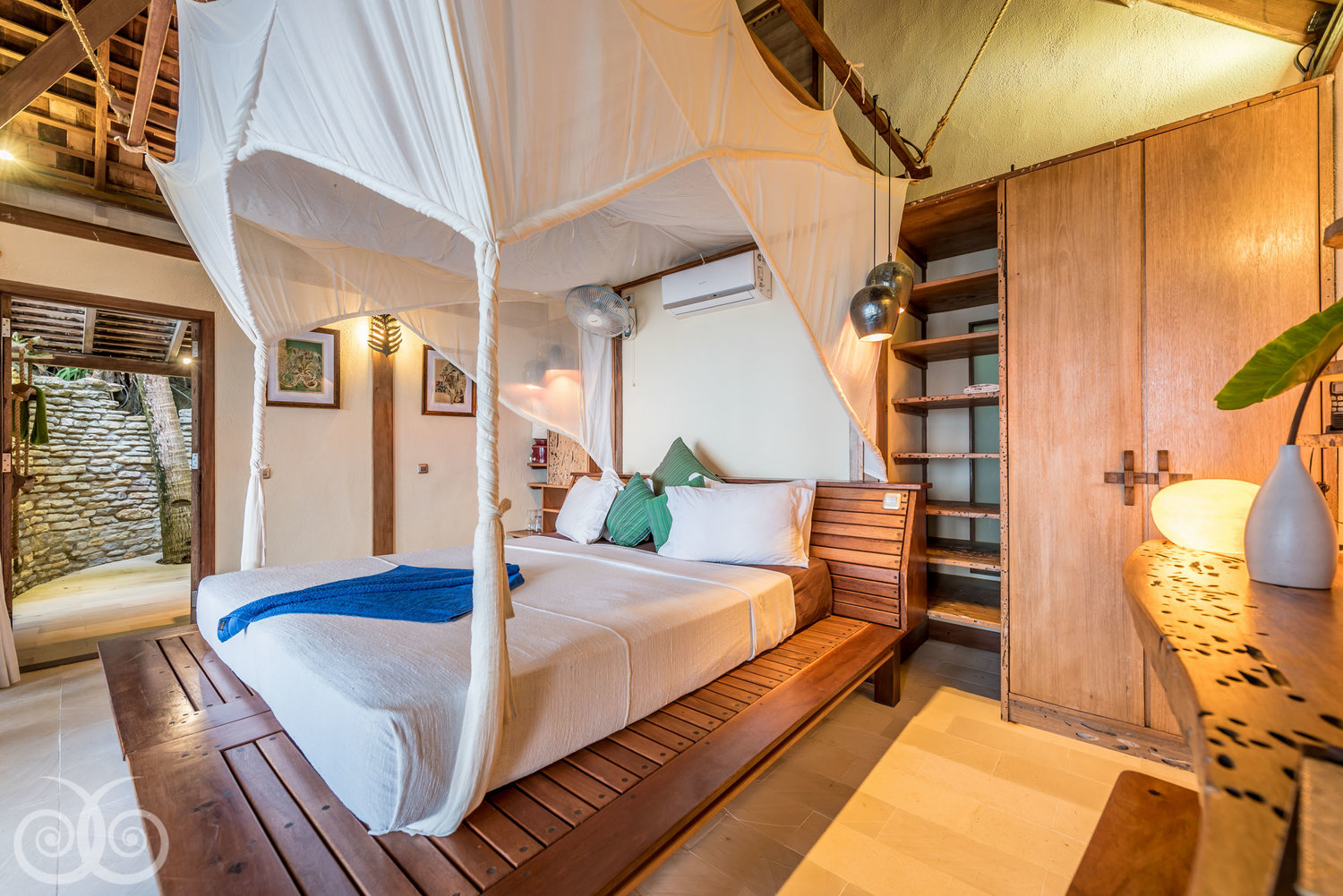 The rooms are designed for your comfort, privacy, and the environment. They’re spacious and well-ventilated, scattered around our private island’s unique rocky landscape. You’ll love the Balinese-style open-air bathrooms, wall fans, and air-conditioning units. Enjoy refreshing hot and cold showers, mini-bars full of local treats, and handcrafted furniture.