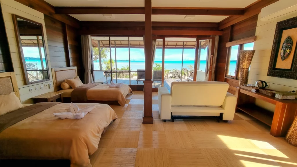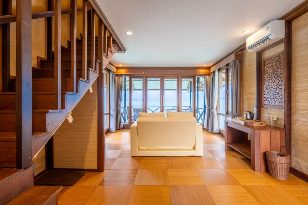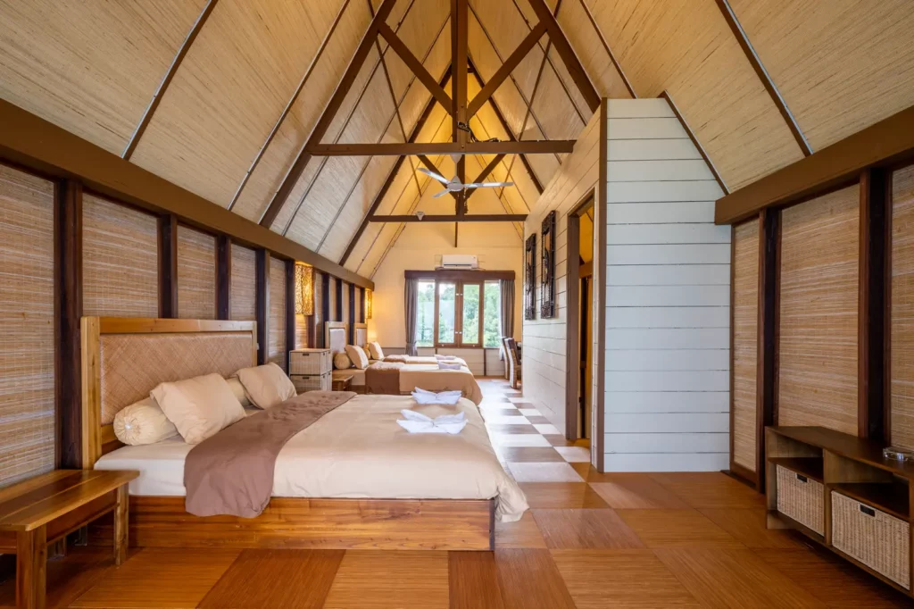 The spacious 132 m² Sangalaki Villa offers breathtaking elevated ocean views from both the master bedroom and the separate living area, creating a serene island retreat. Perfectly suited for groups or families, this villa accommodates up to 6 guests with its comfortable layout, featuring 4 single beds and 1 queen bed. Enjoy tranquil sea views, ample space, and a blend of luxury and comfort, making Sangalaki Villa an ideal choice for a memorable stay by the ocean.