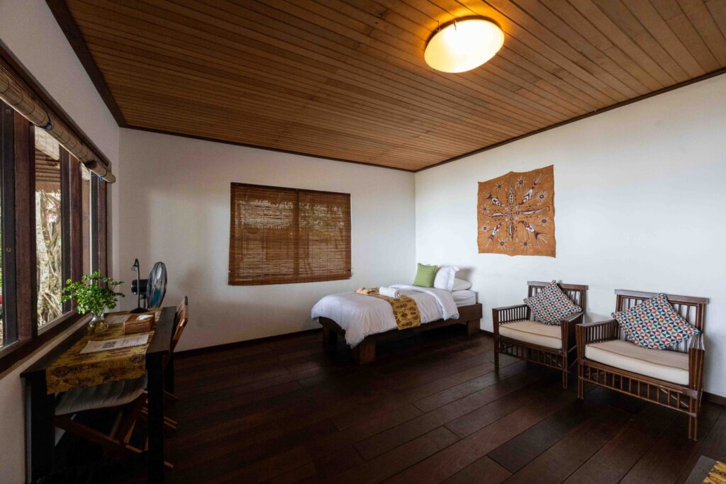 The Sentani Bungalow offers a cozy, intimate stay with everything a diver or couple needs for comfort and convenience. Built in traditional Papuan style and set close to the water, it features air-conditioning, an en-suite bathroom, a private veranda, and a practical back entrance ideal for drying wetsuits and gear. With an in-room camera workstation and both 110V and 220V outlets, it’s especially suited for underwater photographers.