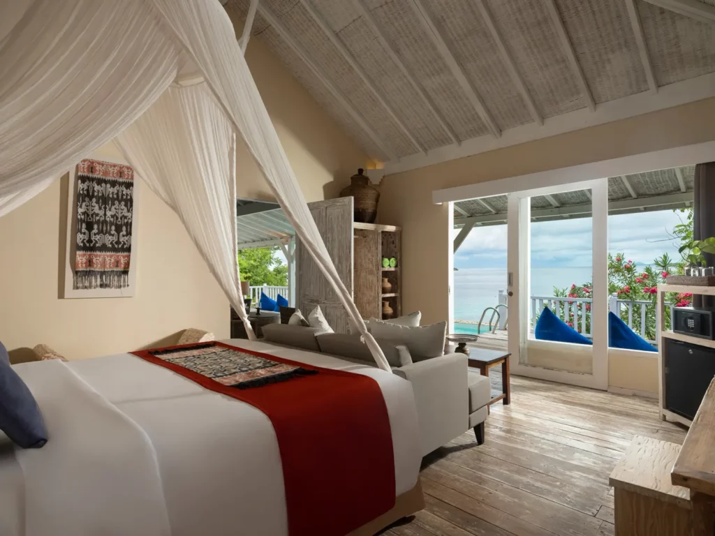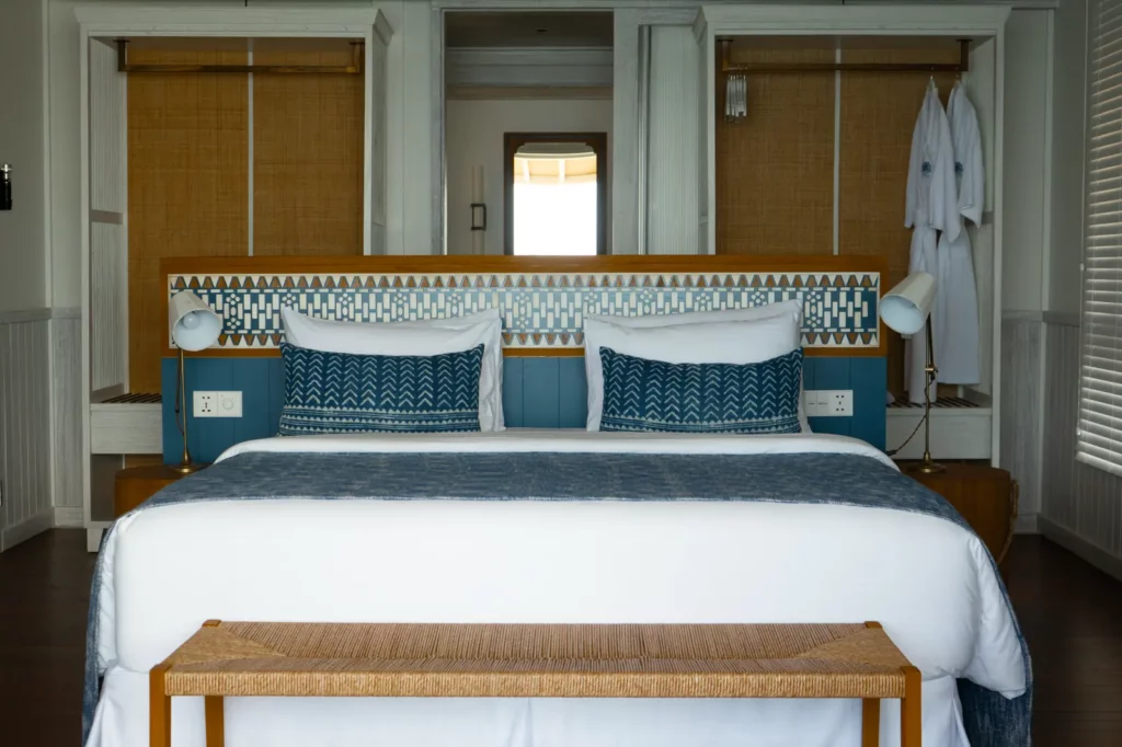The bungalow offers 45 sqm of elegant white-washed interiors, with a spacious bathroom and plush amenities. Modern comforts include a minibar and a safe. Relax on the private balcony, where you can enjoy stunning views of the beach and ocean.