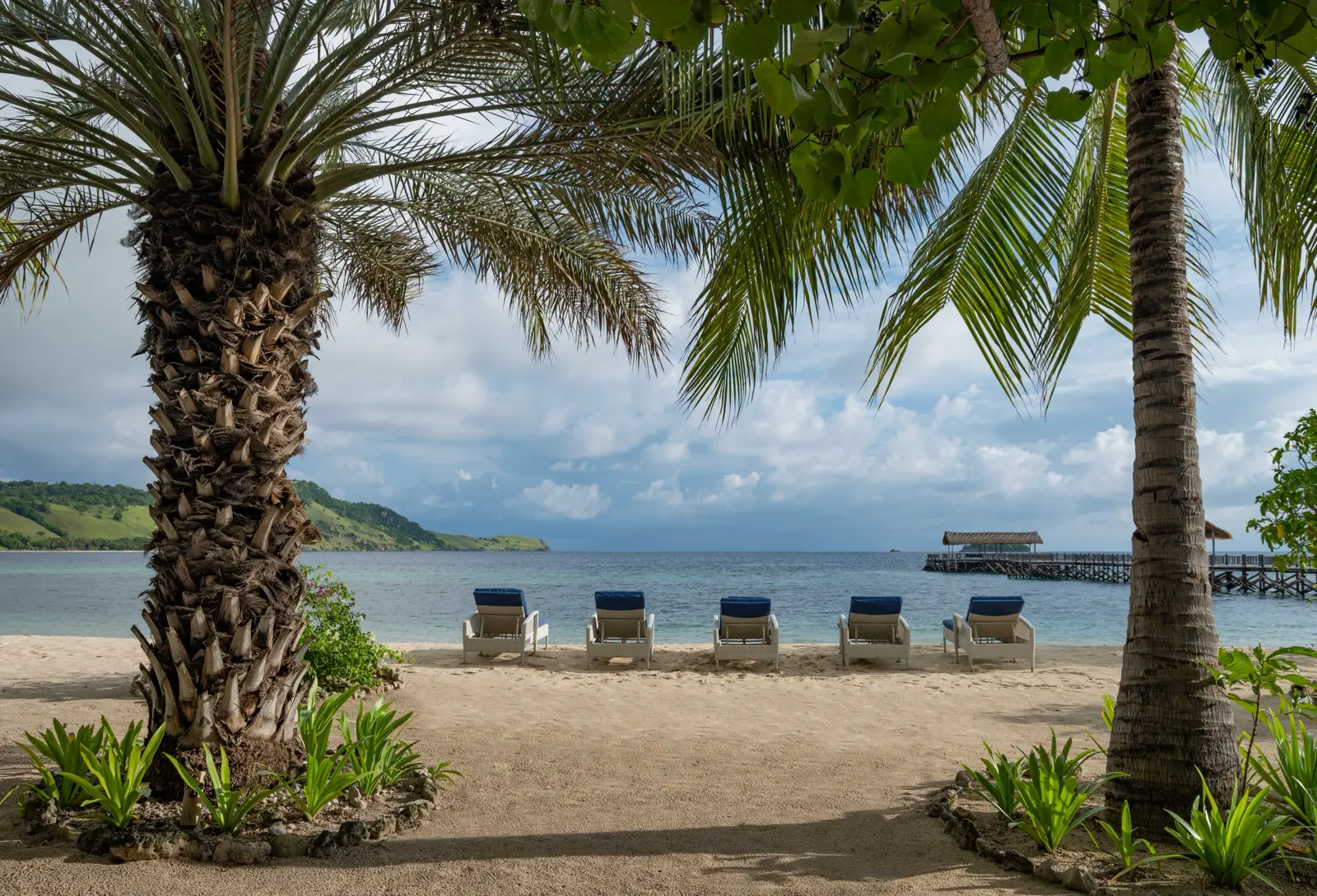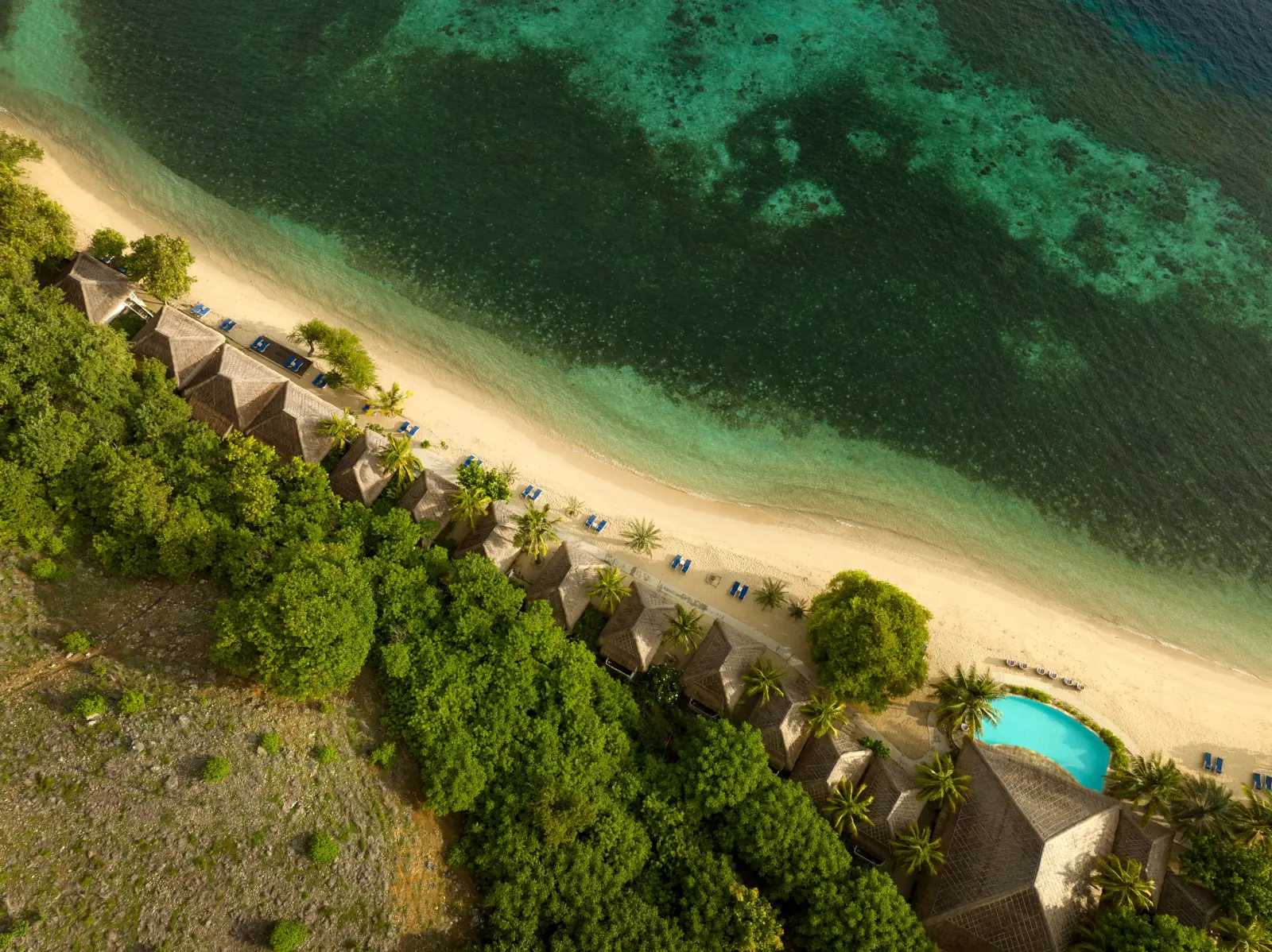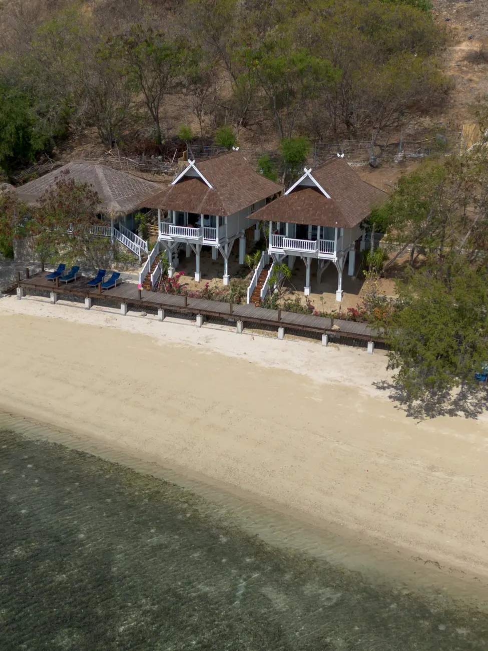 The resort offers elegant beach bungalows with whitewashed cottages and alang-alang thatched roofs, surrounded by vibrant bougainvillea. Each bungalow is equipped with modern comforts, including air conditioning, water heaters, and ocean-facing wooden decks. Ideal for honeymooners, families, or anyone seeking a peaceful retreat, it’s the perfect place to immerse yourself in the beauty of this remote paradise.
