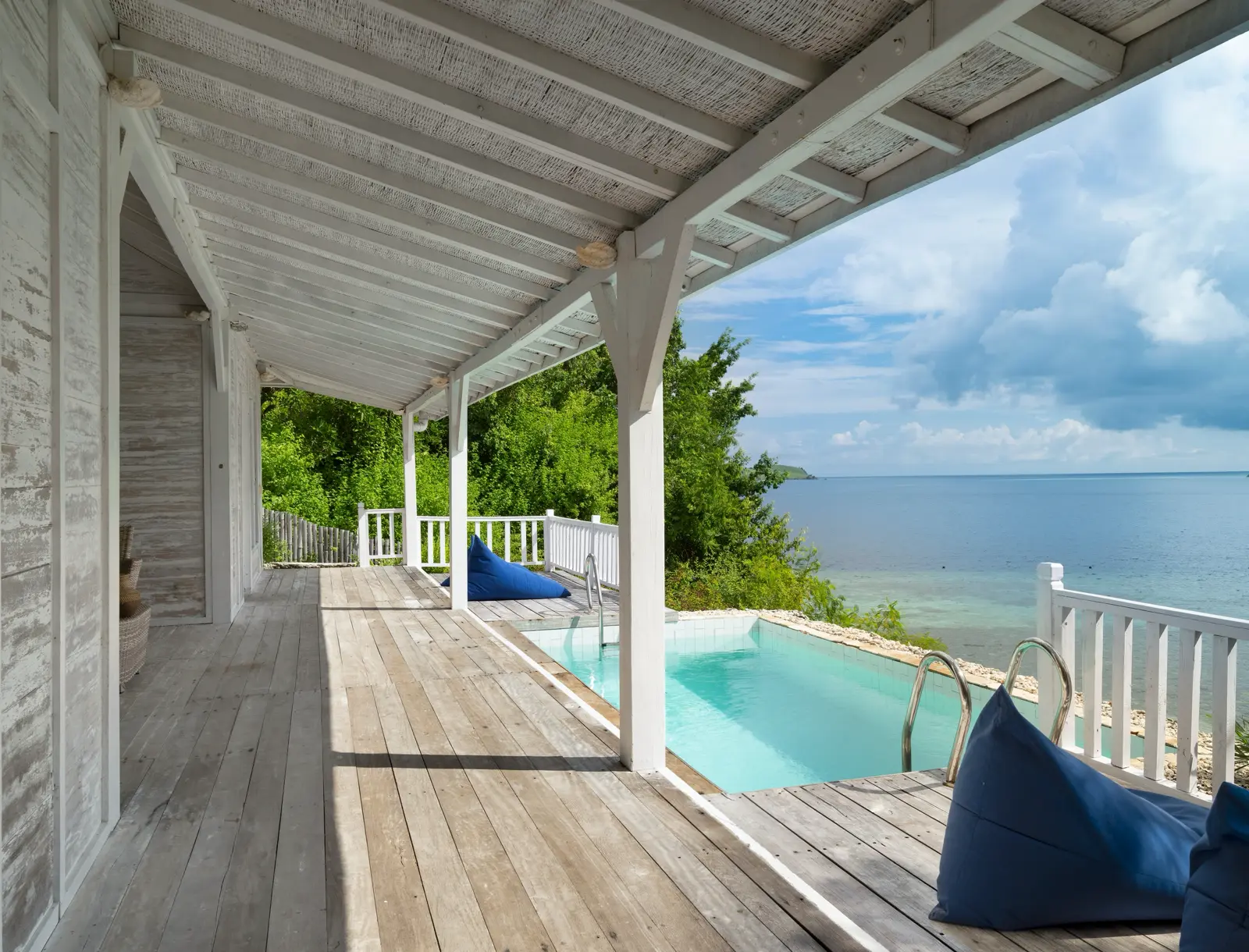The bungalow offers 45 sqm of elegant white-washed interiors, with a spacious bathroom and plush amenities. Modern comforts include a minibar and a safe. Relax on the private balcony, where you can enjoy stunning views of the beach and ocean.