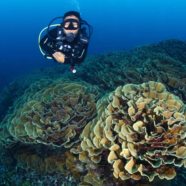 - The Koon Archipelago: A remote trio of sandy cays with deep drop-offs, clear waters, and the legendary site Too Many Fish, known for zebra sharks, hammerheads, and massive schools of fish.