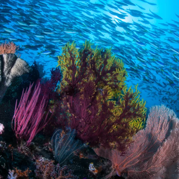 - Fiabacet & Boo (Misool Region): Among the most biodiverse reefs on Earth. Ridges, channels, seamounts, sharks, mobulas, and iconic formations like Boo Windows and Magic Mountain. A soft-coral paradise.