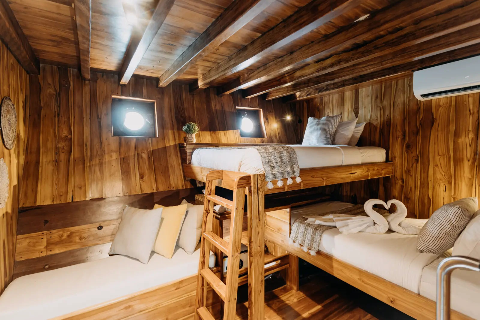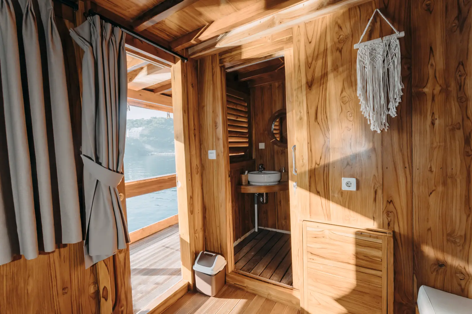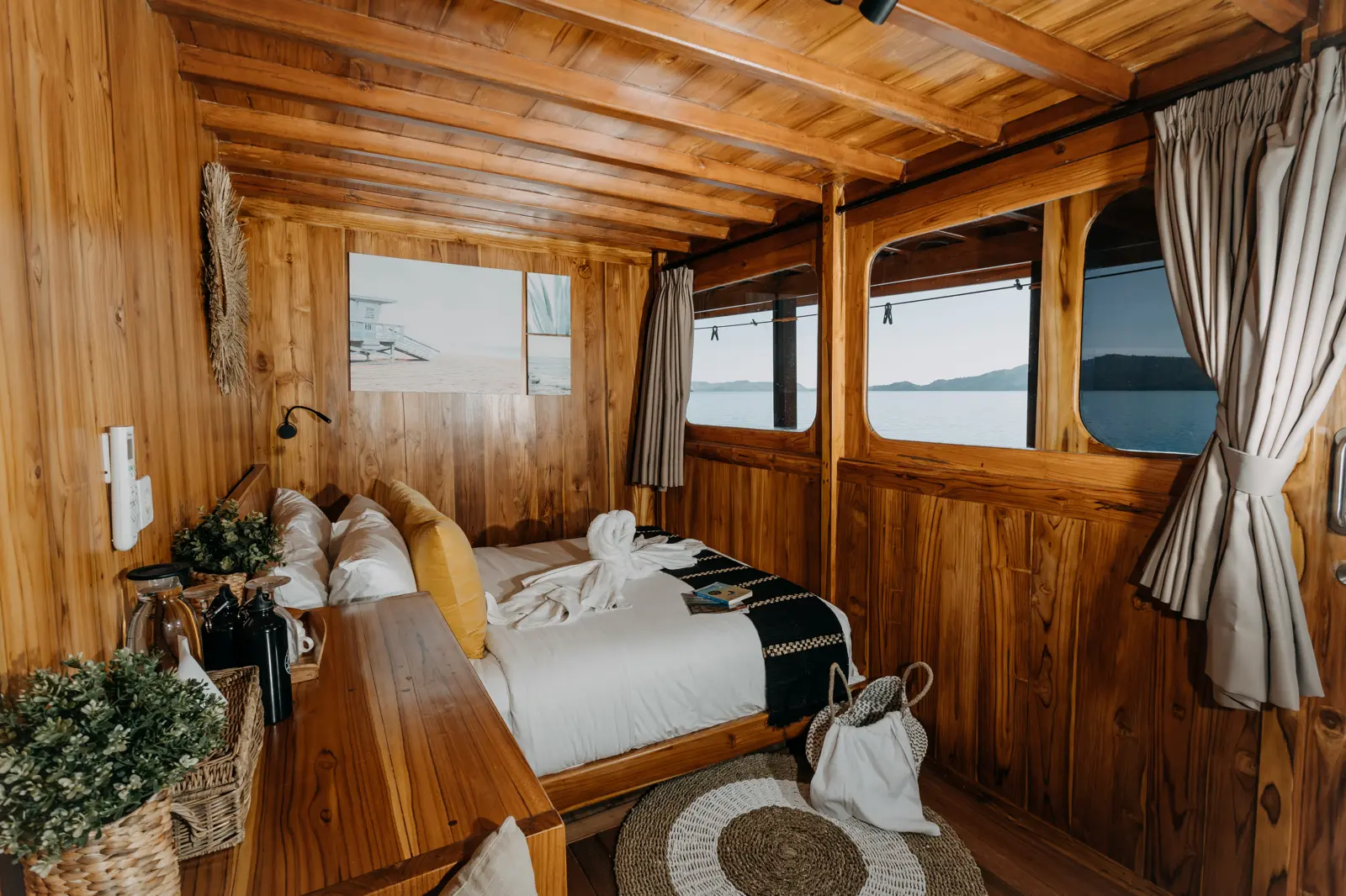 The Master Cabin features a double bed for 2 persons, a private bathroom, and air conditioning. Enjoy beautiful sea views from your cabin, making it a perfect choice for a comfortable and relaxing stay.