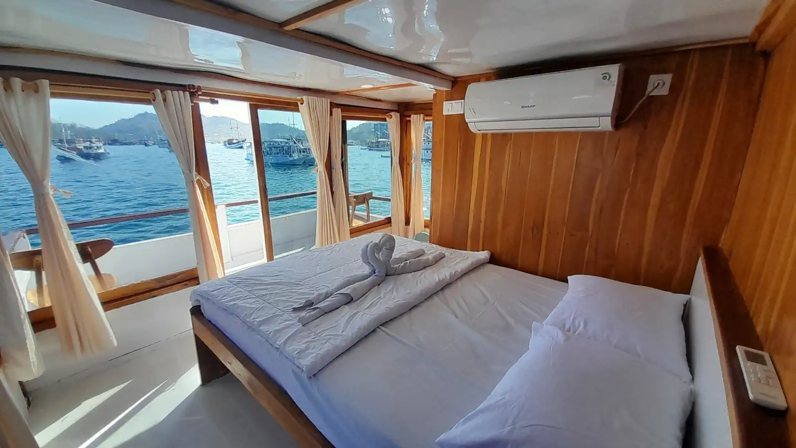 - Master Cabin | Upper Deck, Double Bed, Private Bathroom, Private Balcony | IDR 4,950,000 / USD 305 per person