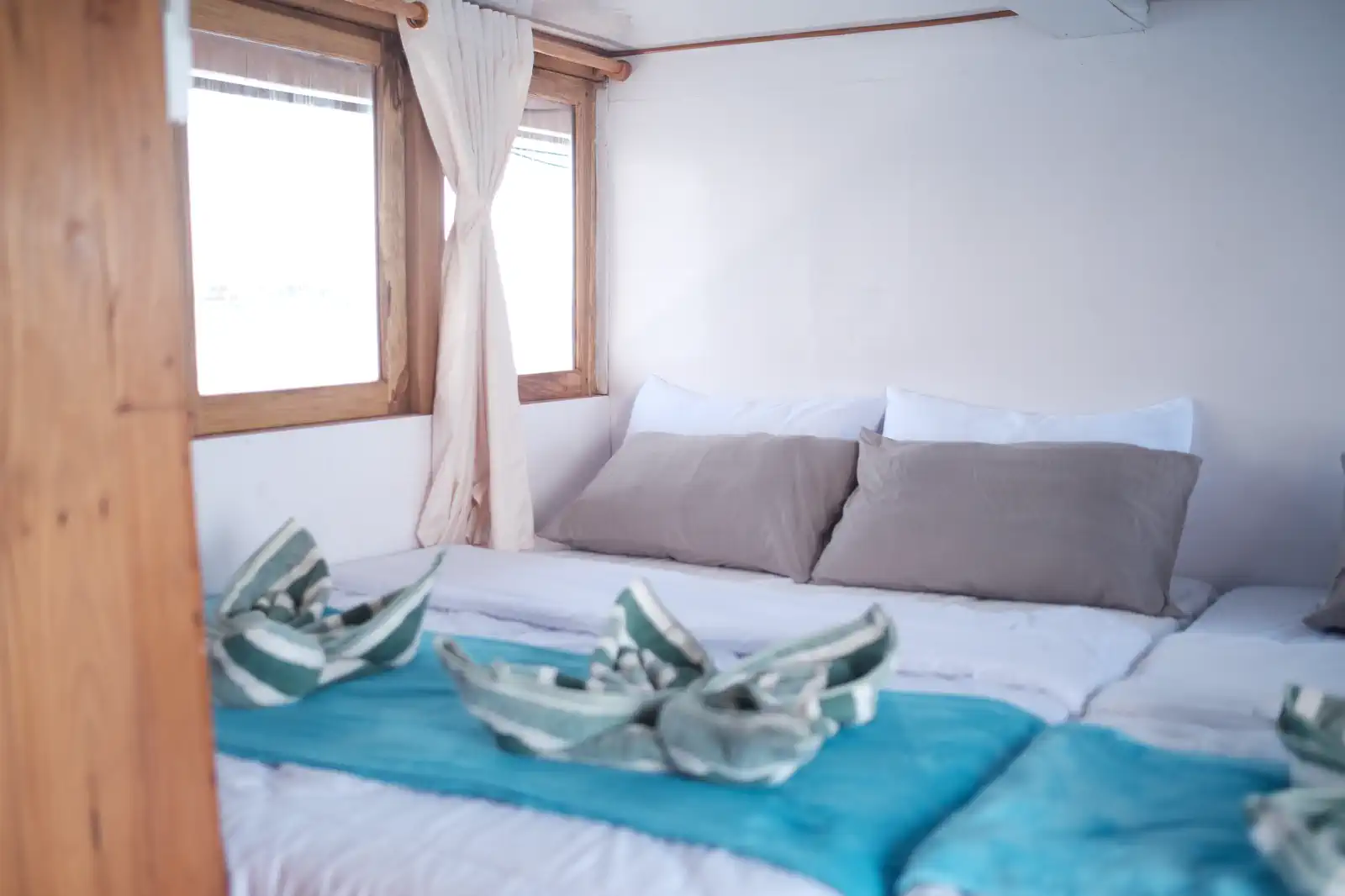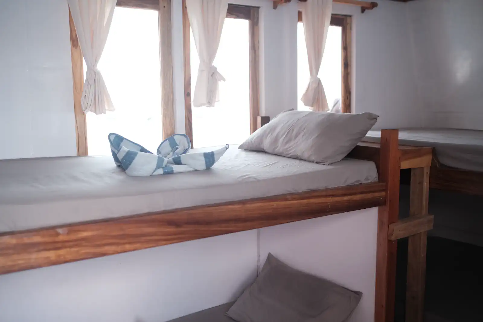 - Sharing Cabin | Main Deck, Single Bunk Bed, Private Bathroom | IDR 3,000,000 / USD 185 per person