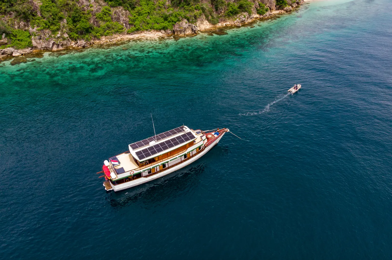 Bajau offers a truly immersive way to explore Indonesia’s breathtaking archipelago, designed for travelers who appreciate sustainability and serenity at sea. With four spacious cabins, it comfortably accommodates 8–10 guests, making it an ideal choice for small groups or families. Powered by solar energy, Bajau minimizes generator use, ensuring a peaceful and eco-friendly journey.
