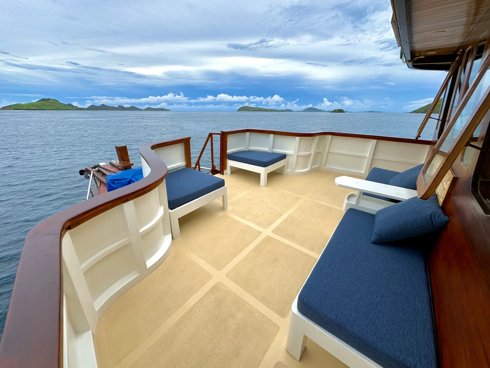 For diving enthusiasts, Bajau is equipped with a dedicated dive room, thoughtfully designed for convenience and safety. It includes equipment storage, a preparation area, rinsing stations, repair tools, and emergency safety gear, making every dive smooth and hassle-free. With its open-concept social spaces and panoramic ocean views, Bajau provides the perfect setting to relax and connect with nature while sailing through Komodo, the Flores Sea, Wakatobi, and the remote Banggai Archipelago.