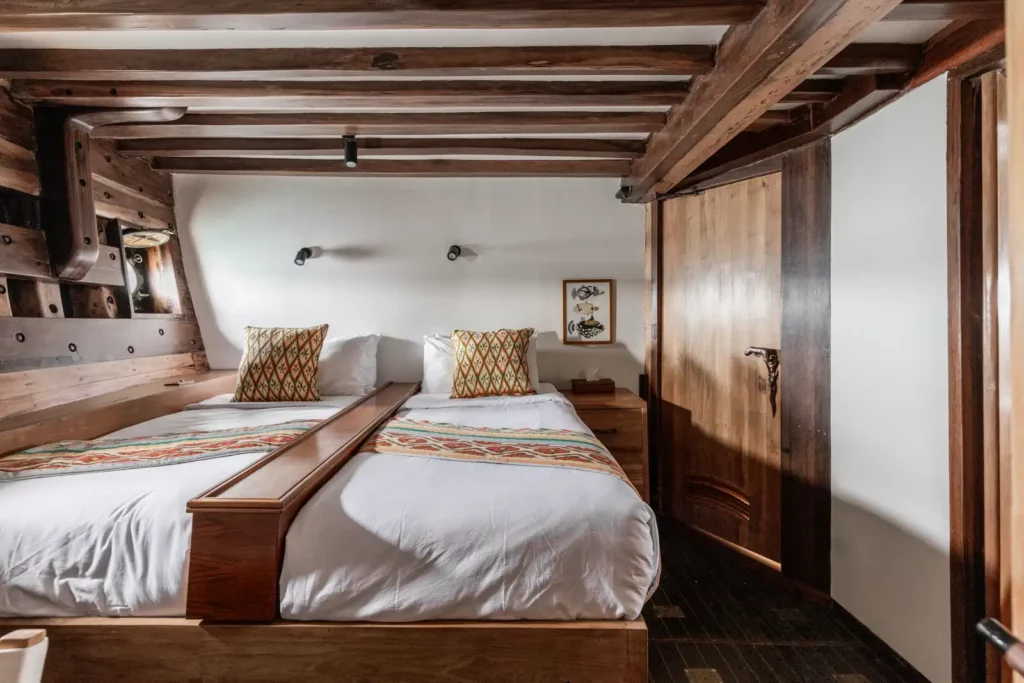 El Aleph features five cabins designed for comfort and style, blending handcrafted details with Rascal Voyages’ Archipelago Chic aesthetic. Each cabin is fully air-conditioned and comes with an ensuite bathroom, lighter teak interiors, and curated touches that highlight Indonesian craftsmanship in a contemporary way.