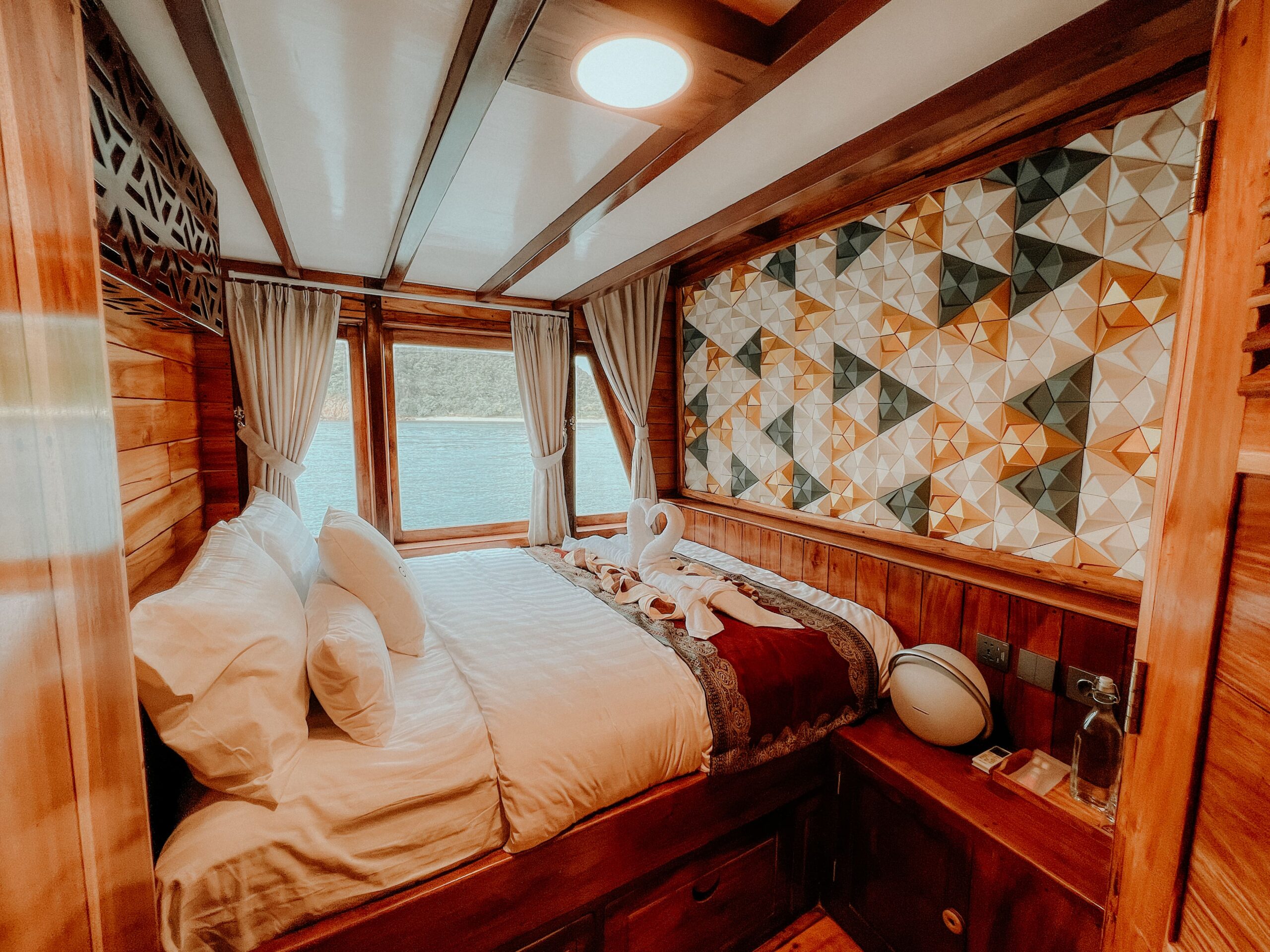 Located on the upper deck. These cabins redefine comfort with their ocean-view rooms, ensuring you never miss a moment of Komodo’s stunning scenery. Equipped with air-conditioning and private bathrooms featuring hot/cold shower.