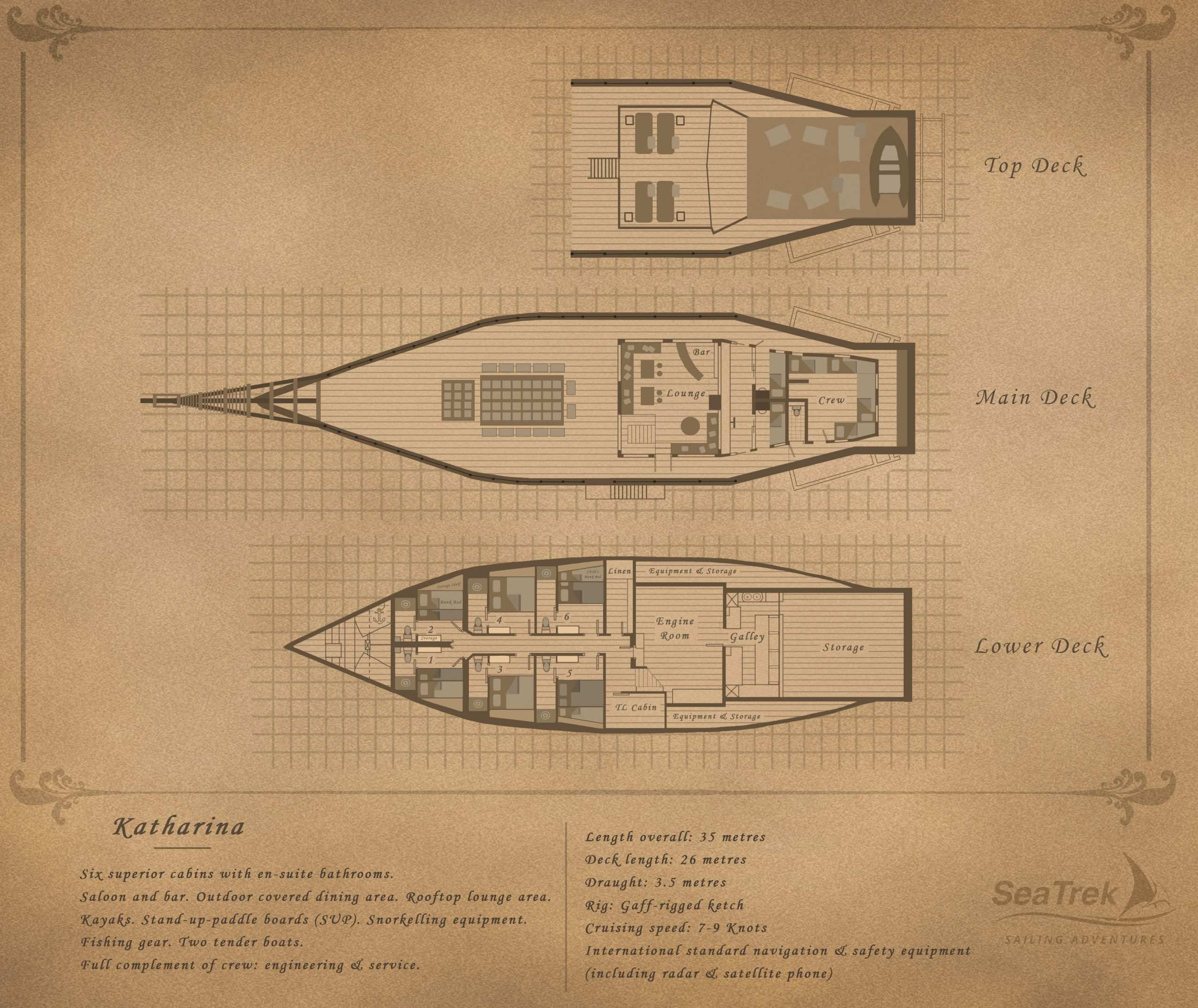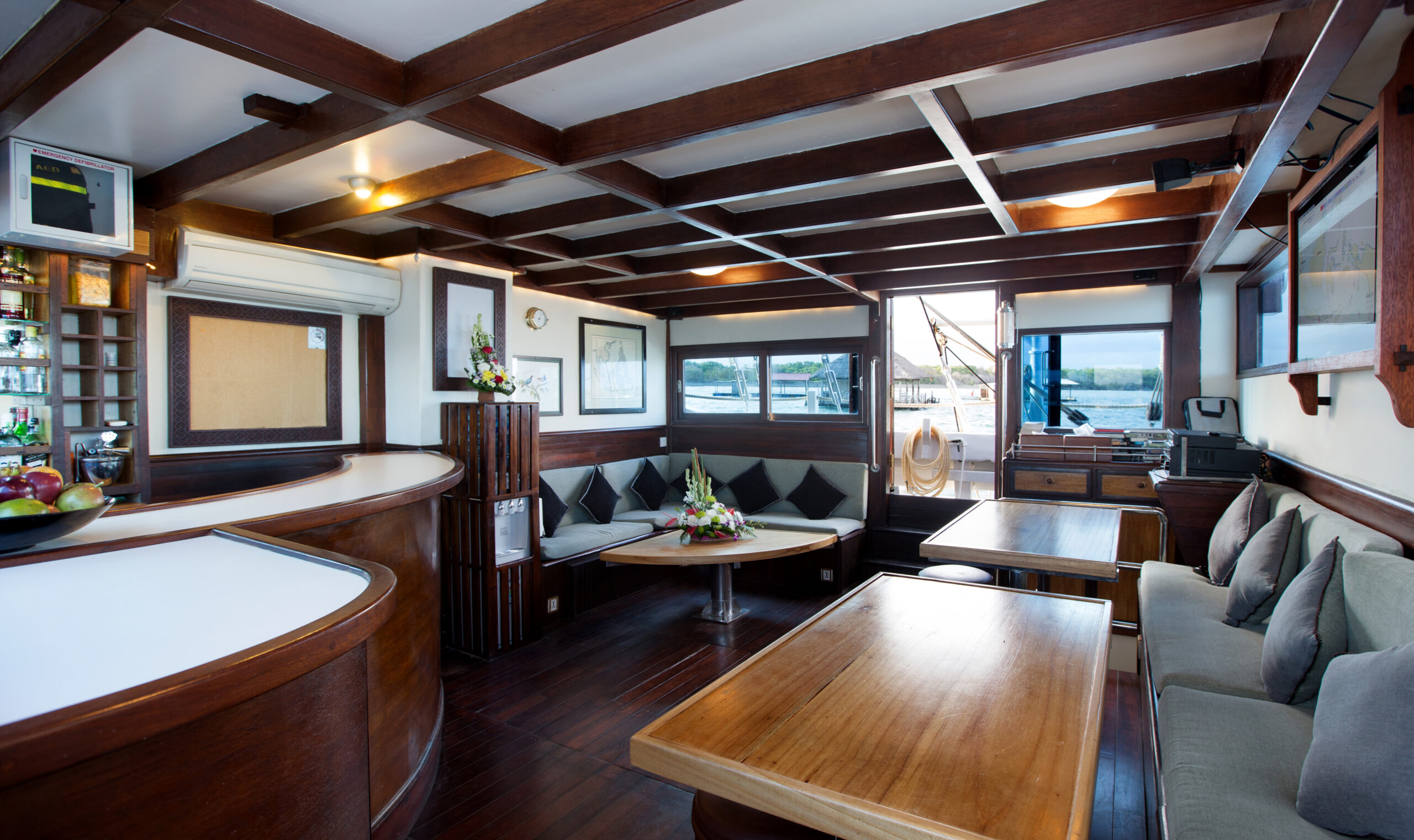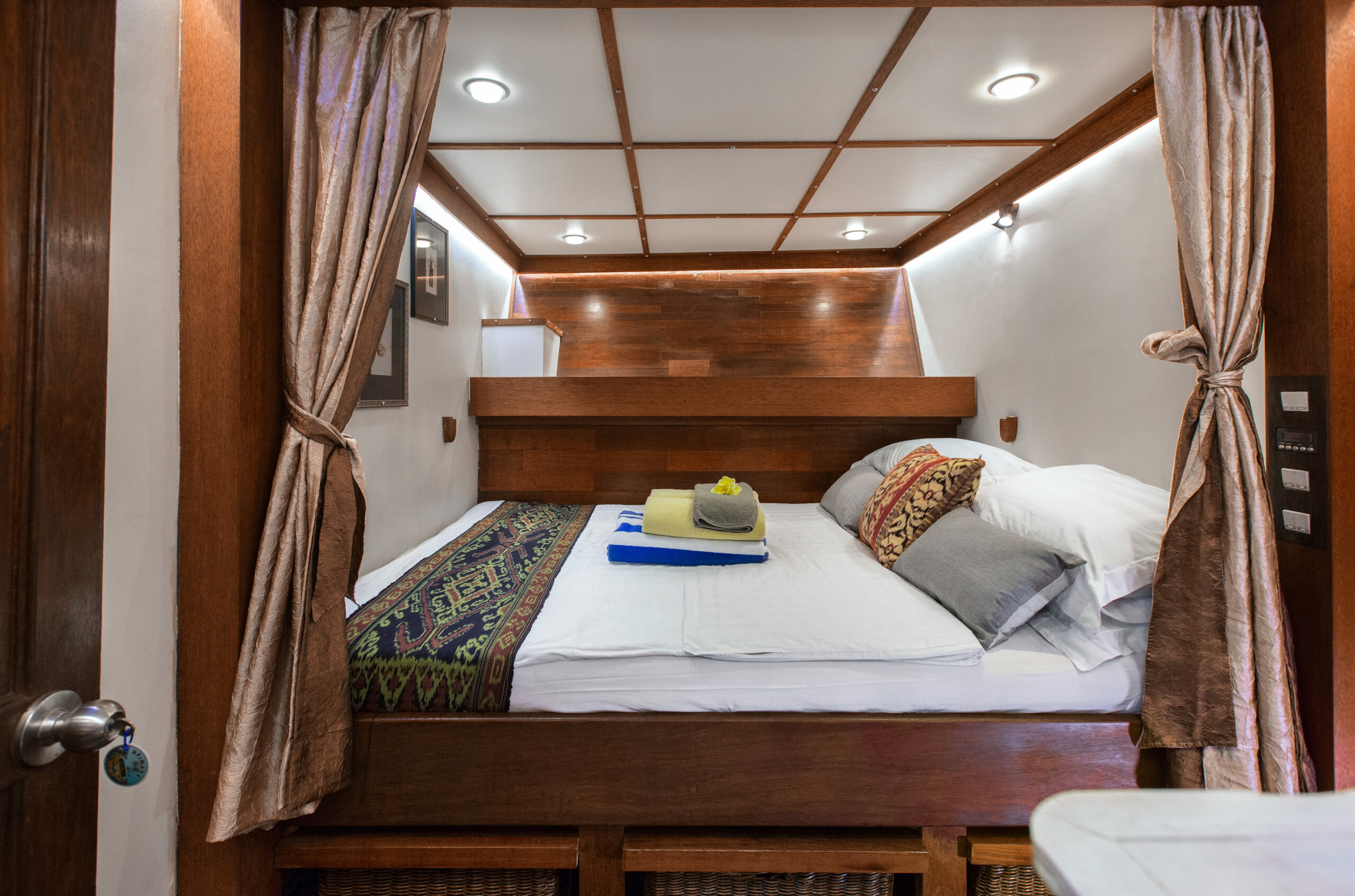 The Katharina allows you to explore the Indonesian archipelago at your pace, with a cruising speed of 7-9 knots. Operated by 12 crews, they are always ready to assist you and ensure comfort on board at any time.