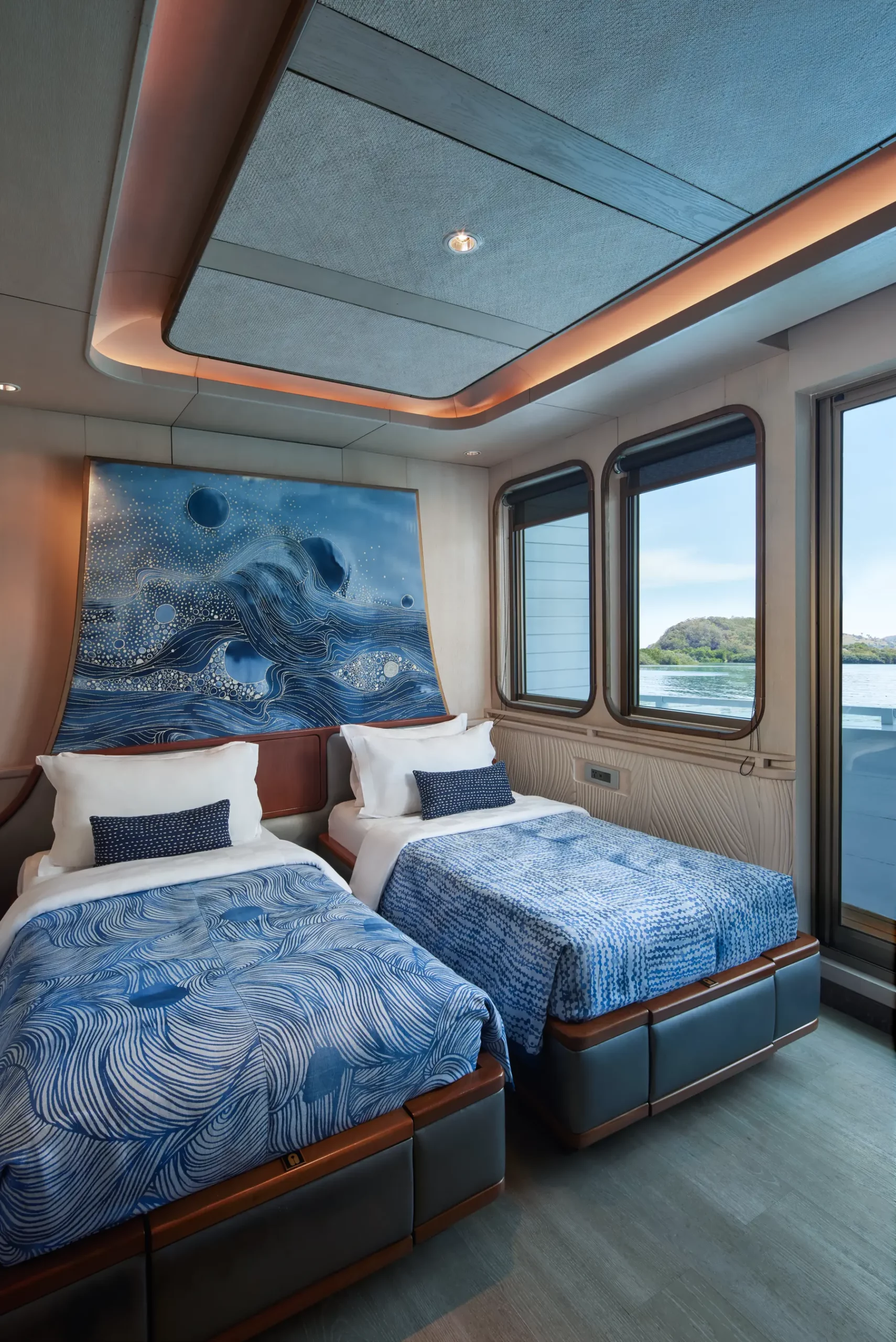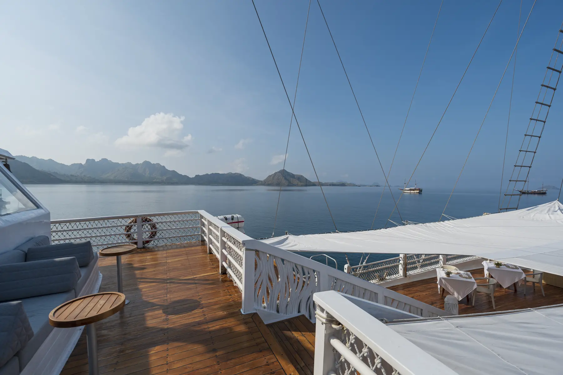 With nine beautifully appointed suites accommodating up to 18 guests, every cabin offers ensuite bathrooms, air-conditioning, premium linens, and AYANA’s signature amenities. Spacious lounges, open decks, and curated dining spaces create an atmosphere of refined relaxation, ideal for scenic cruising, stargazing, wellness sessions, and social gatherings at sea.