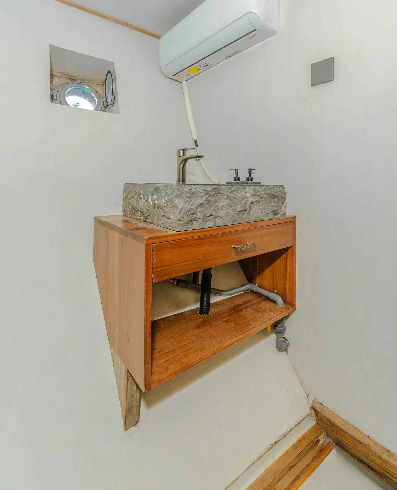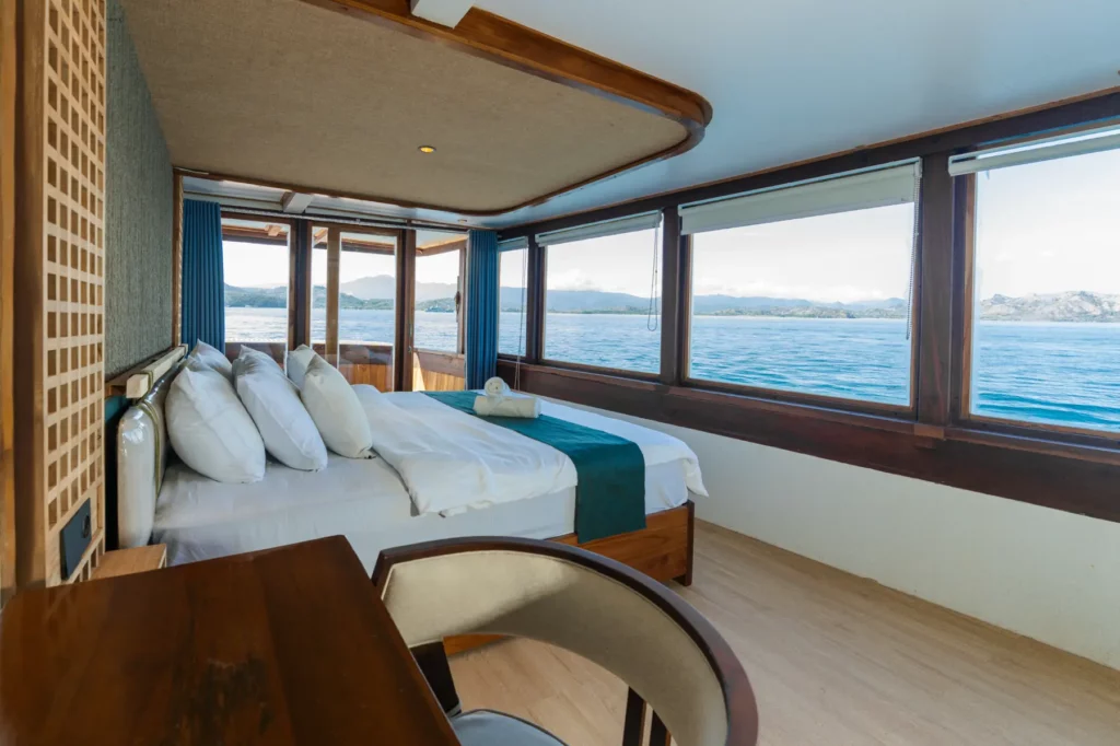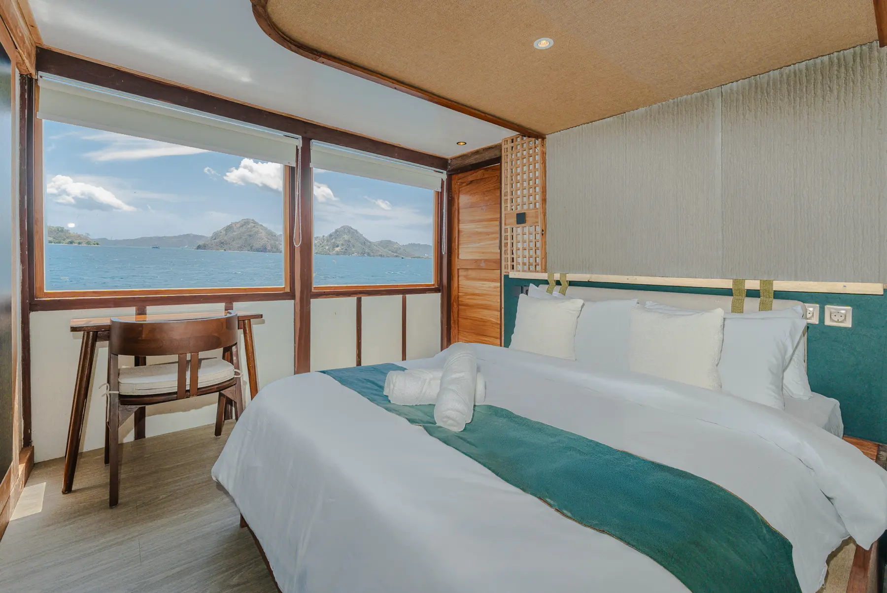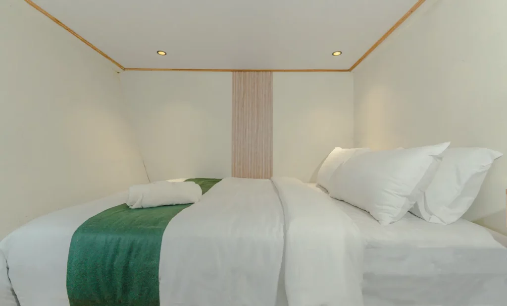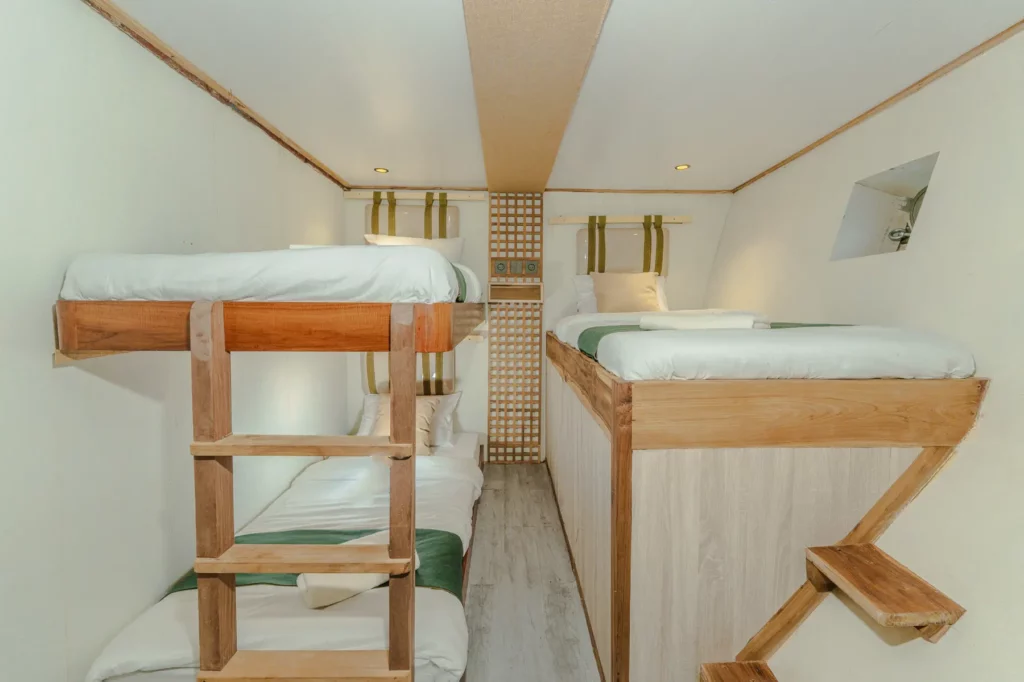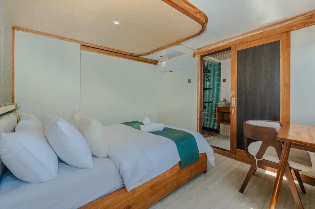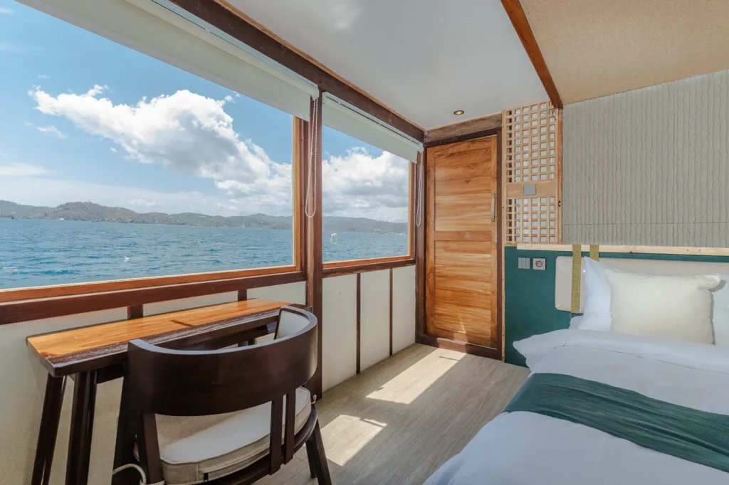 This lower-deck cabin offers three single beds and a private bathroom, making it the perfect choice for small groups or budget-conscious travelers who want to experience Komodo’s beauty with comfort and convenience.